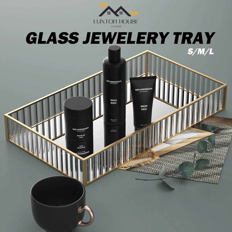 {SG} 25cm 30cm Nordic Glass Tray Jewellery Tray Luxury Glass Storage Tray Serving Tray Organizer