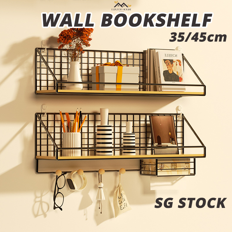 {SG} 35/45cm Wall Shelf Wall Bookshelf Wall Hanging Display Shelf Wall Mounted Wood Storage Rack for Living Room Hanging