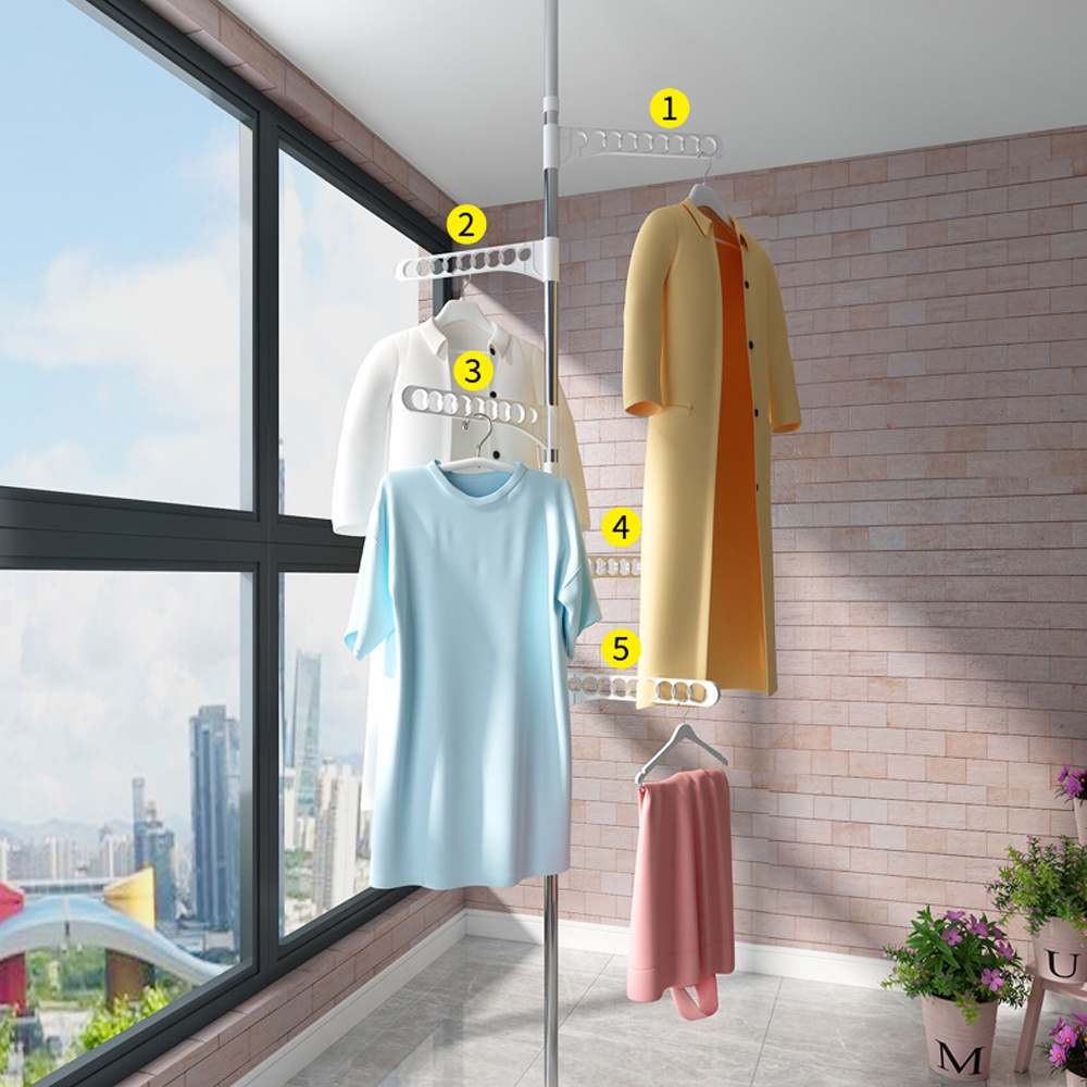{SG} 3M Adjustable Clothes Drying Rack 5-Tier Corner Rack Stainless Steel Ceiling Clothes Hanger Rack Standing Rack