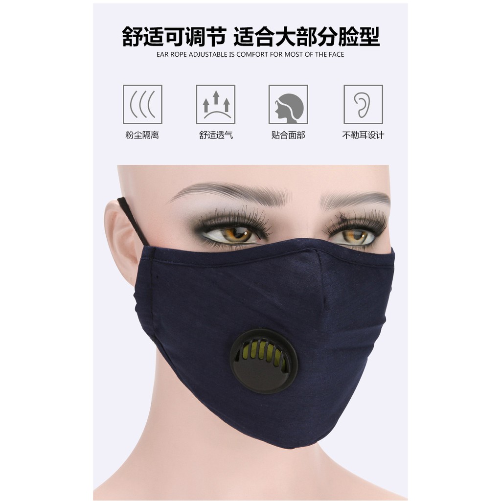 [SG] 3Ply Reusable Face Mask with Breathing Valve+ 2pcs PM2.5 Filter Pad. Easy Breathe Washable Face Masku