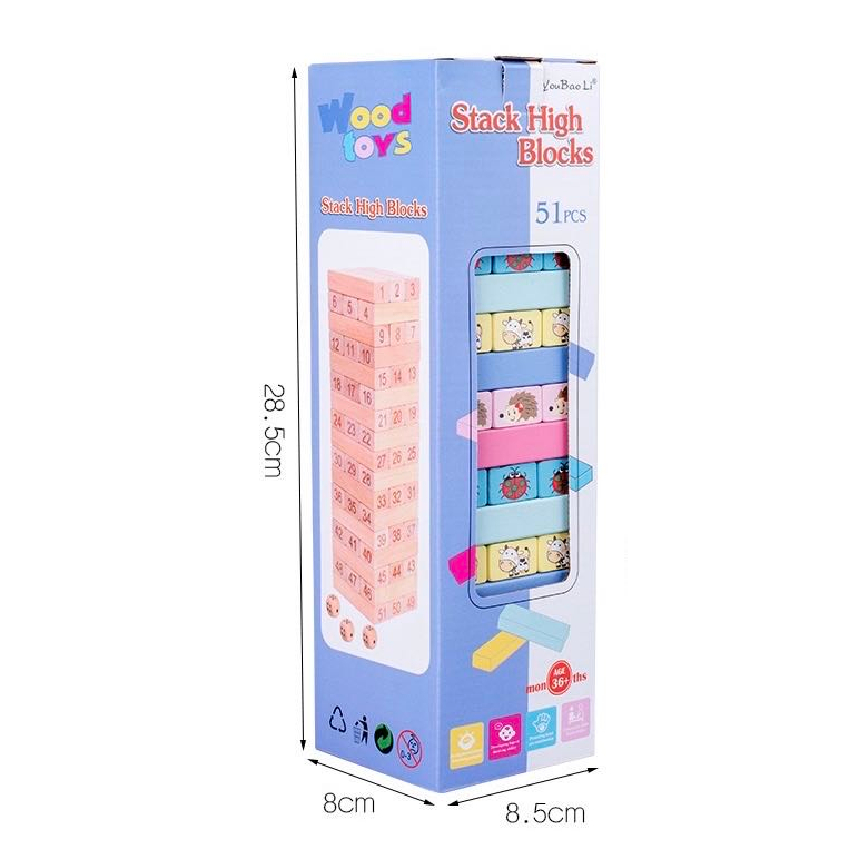 [SG] 54PCS/Set Wooden Tower Building Blocks Toy Rainbow Domino Stacker Board Game Montessori Educational Children Toys