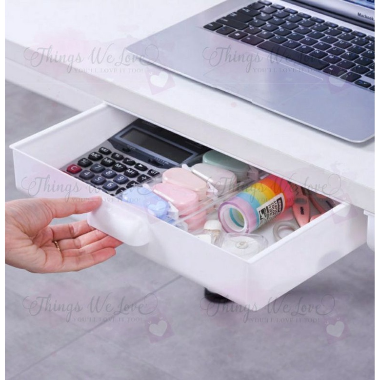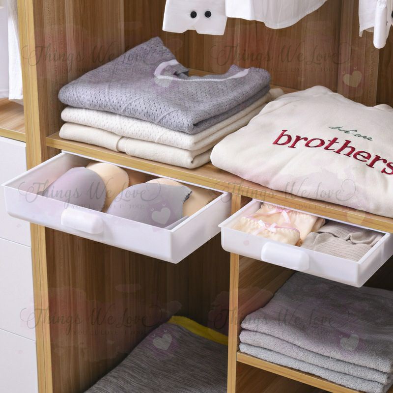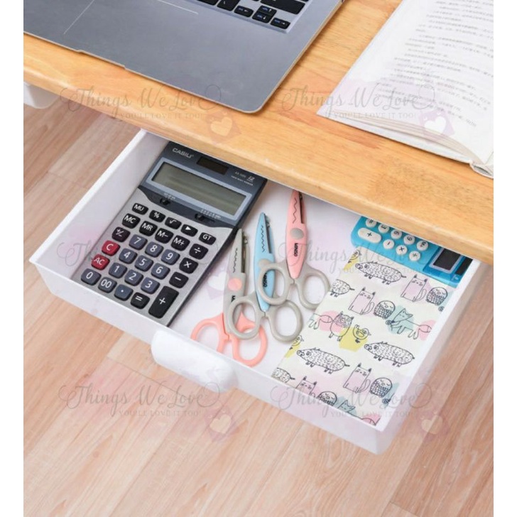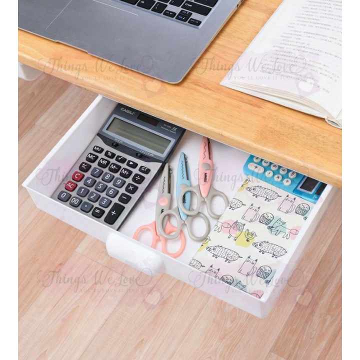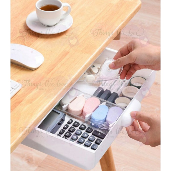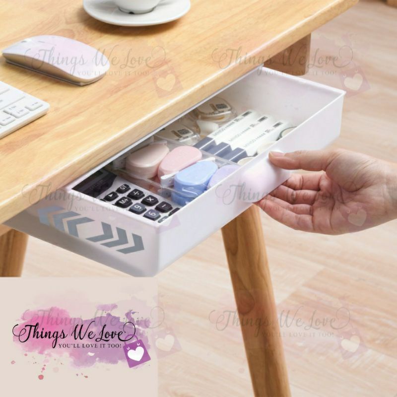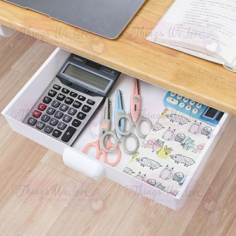 [SG] Add On Pull Out Drawer Storage Stationary Organiser Stick On Study Table Desk Under Mount Compartment Cutlery