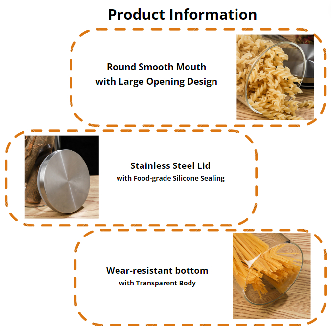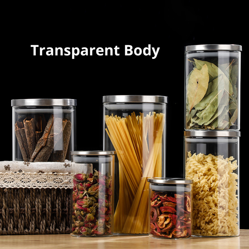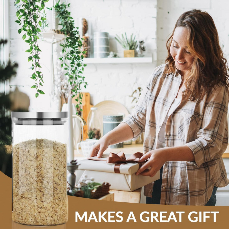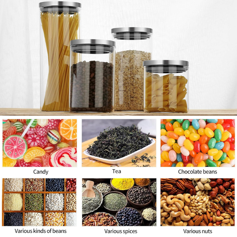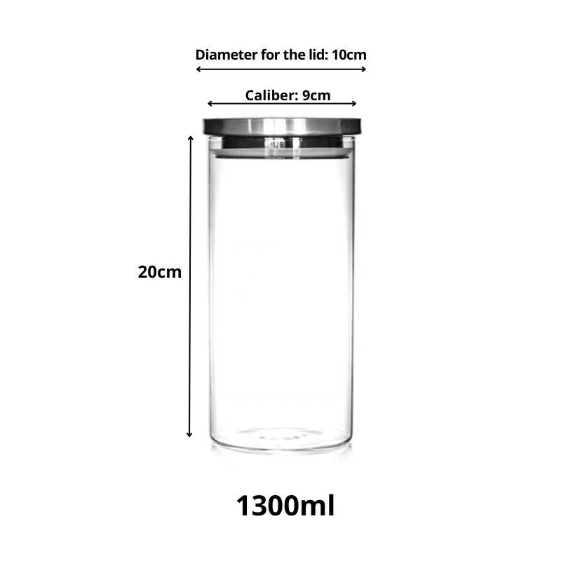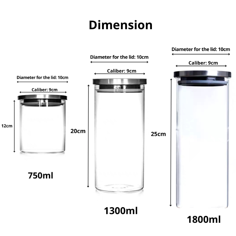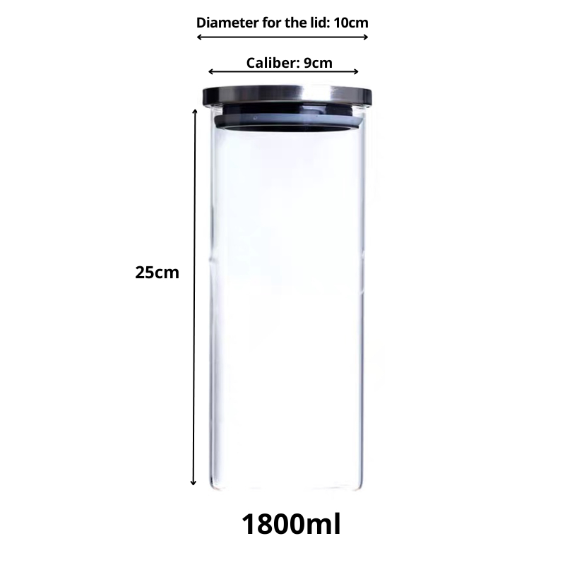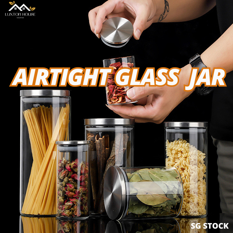 {SG} Airtight Glass Jar 750ml 1300ml 1800ml Stainless Steel Lid With Silicone Sealing Glass Food Storage Container