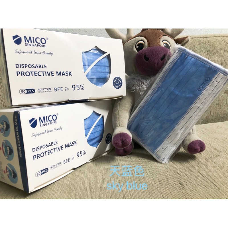 [SG BRAND] MICO Adult 95% 3ply Disposable Face Mask 50pcs/box (17.5 cm x 9.5cm) [Ready Stock]