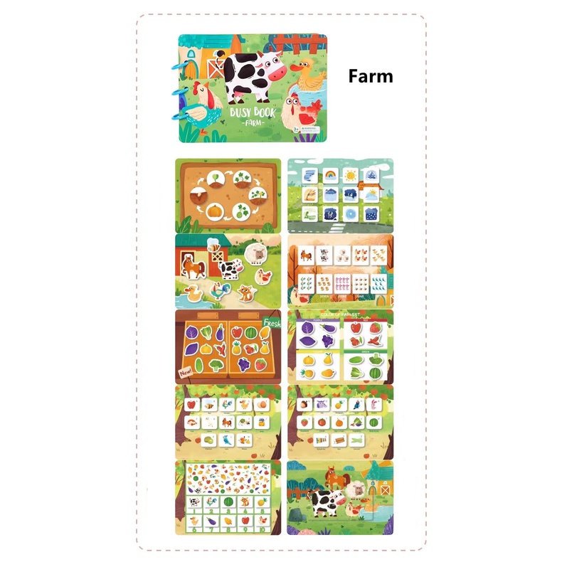 [SG]Baby Toddler Early Learning Books Busy Book Early Development Toys Dinosaur Traffic Farm Life Skills Kids Reuse Book