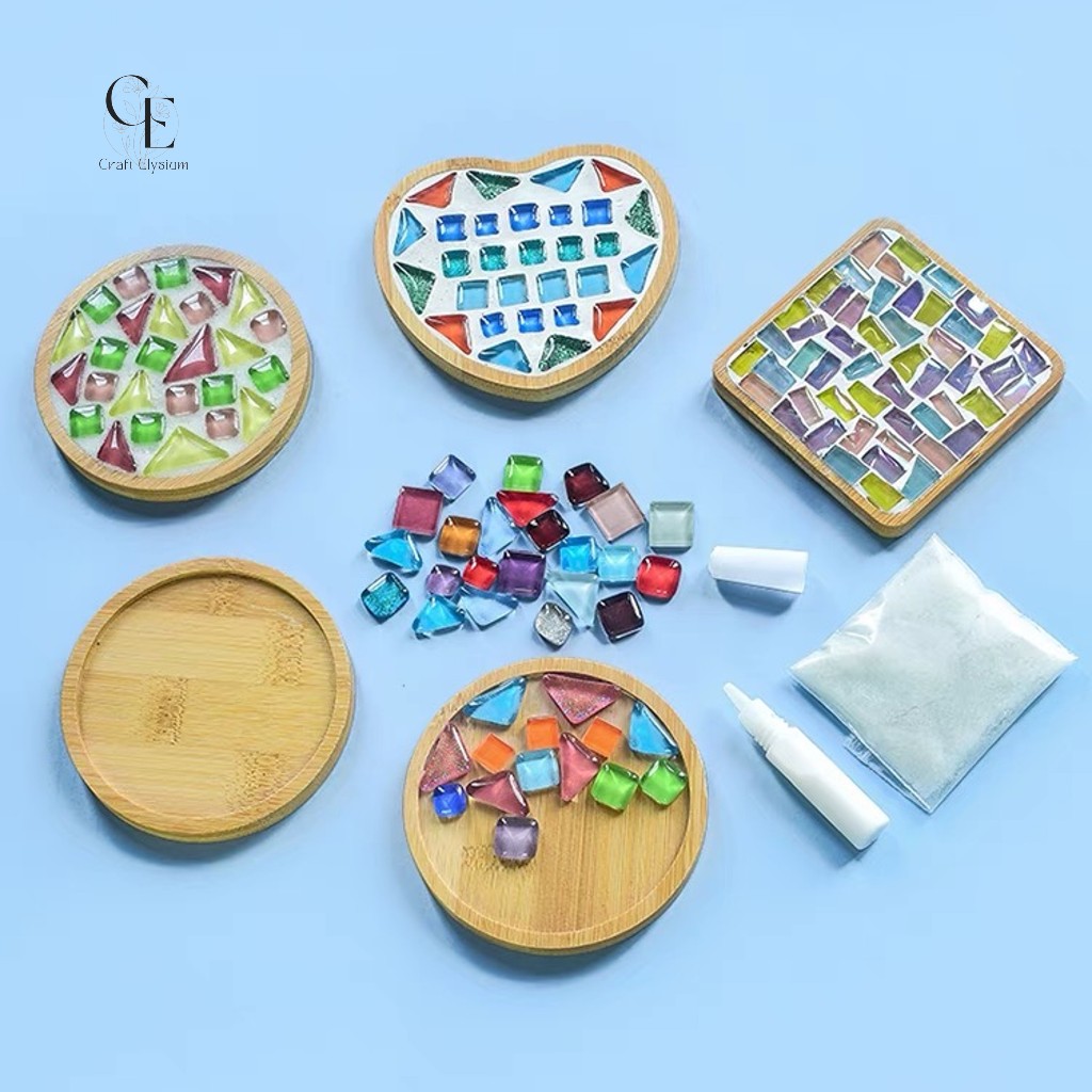 [SG] DIY Mosaic Art Wooden Coaster | Round coaster | Square coaster | Hexagon coaster | Flower coaster | Bamboo Coaster