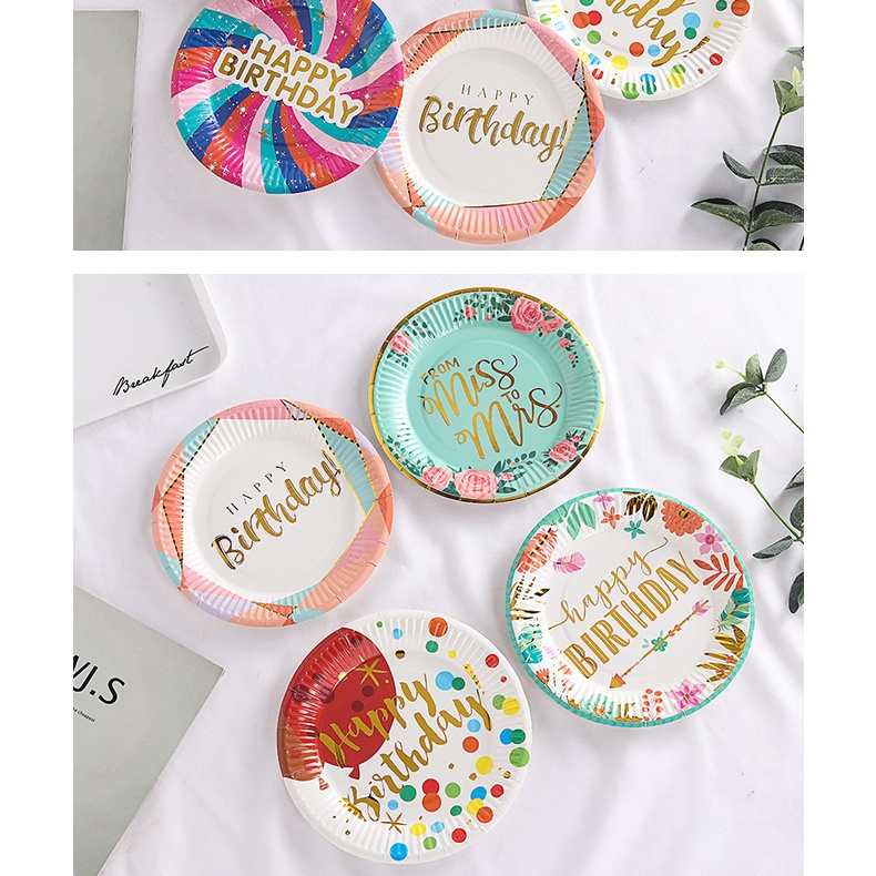 [SG] Disposable paper plates and cups for children's birthday party, come with various designs and colours