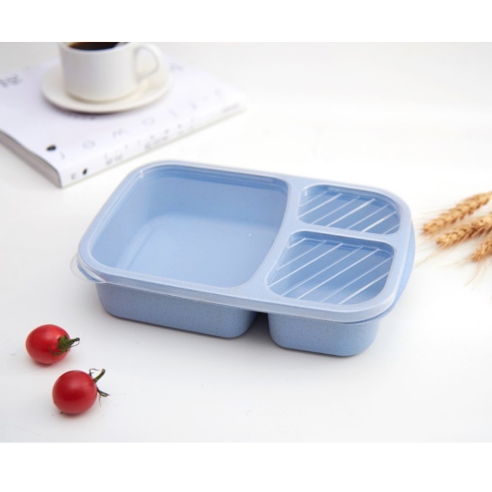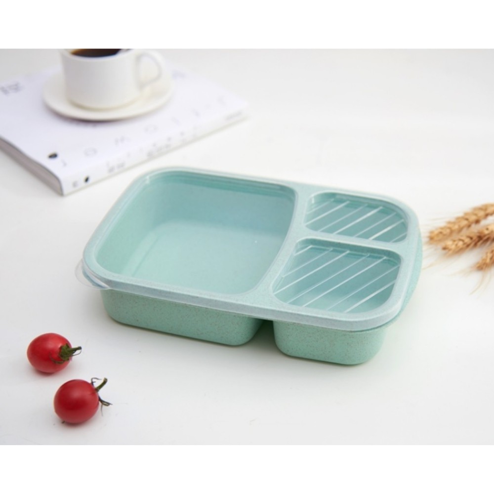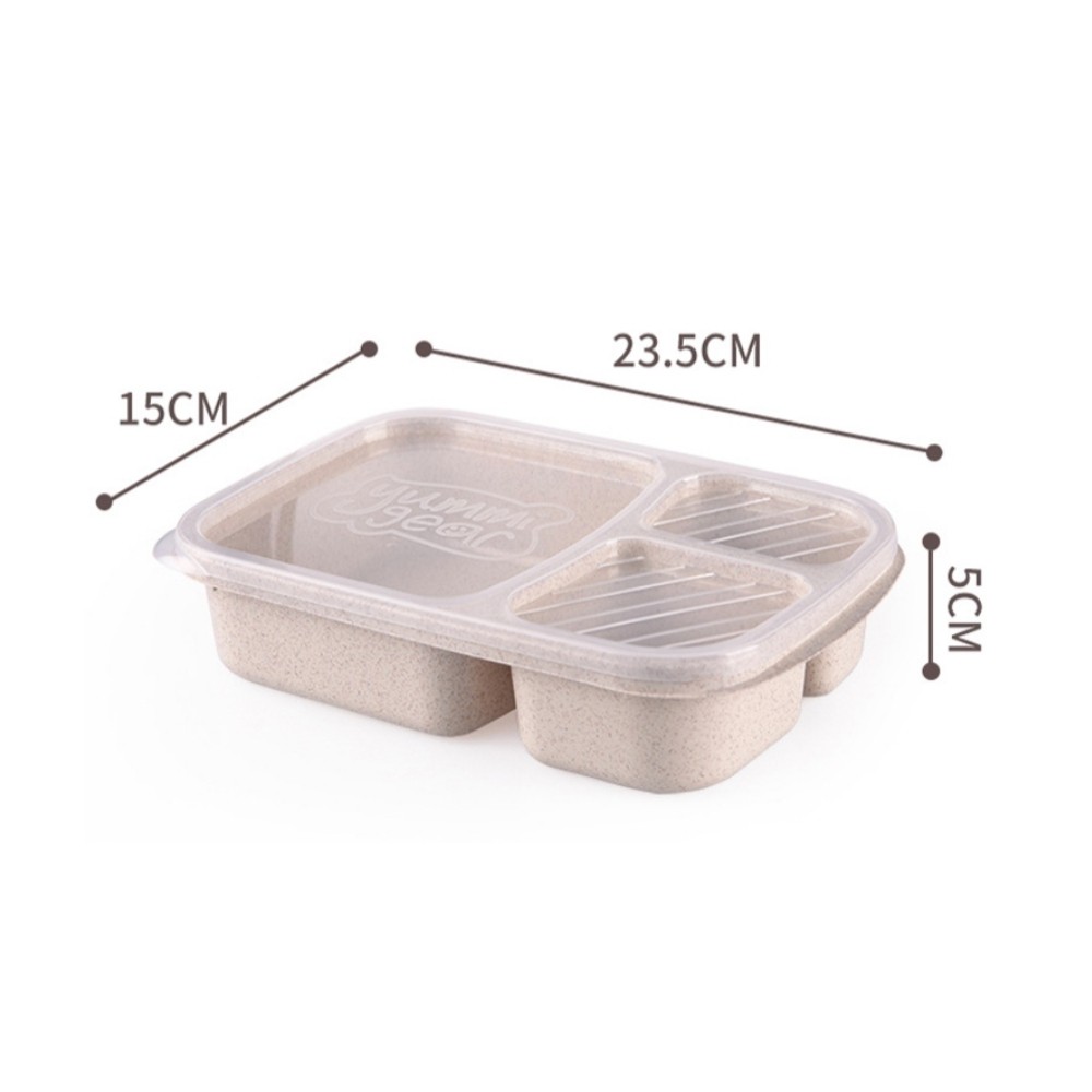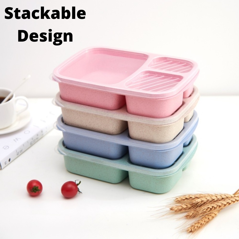 {SG} Eco Friendly Wheat Straw Lunch Box Bento Lunch Box 1000ml Microwaveable Lunch Box 3 grids Lunchbox Biodegradable
