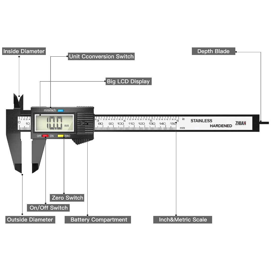{SG} Electronic Digital Vernier Caliper LCD Display 150mm Caliper Measure Tool Measurement Tape Millimeter Conver