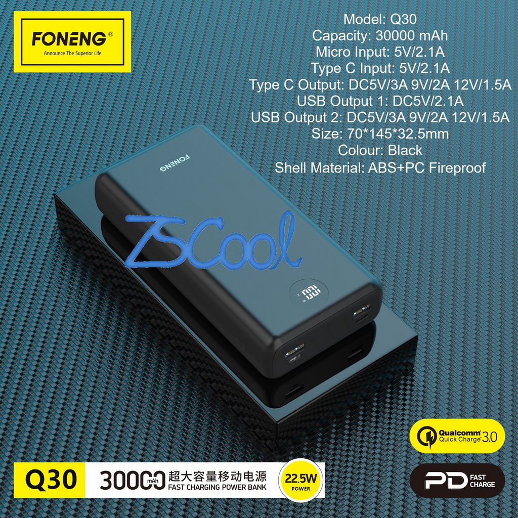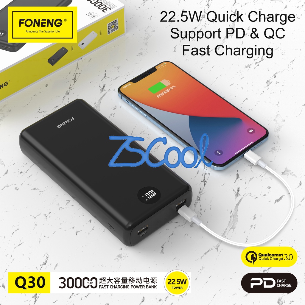 [SG] Foneng Q30 Q20 Q10 22.5W PD+QC Power Bank - 30,000 mah 20,000 10,000 - Full Capacity Fast charging quick charge