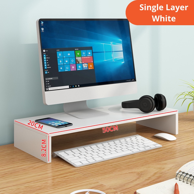 [SG] IMP HOUSE Wooden Monitor Stand Riser Ergonomic Desktop Stand Desk Organizer Keyboard Storage Stationery Wood White