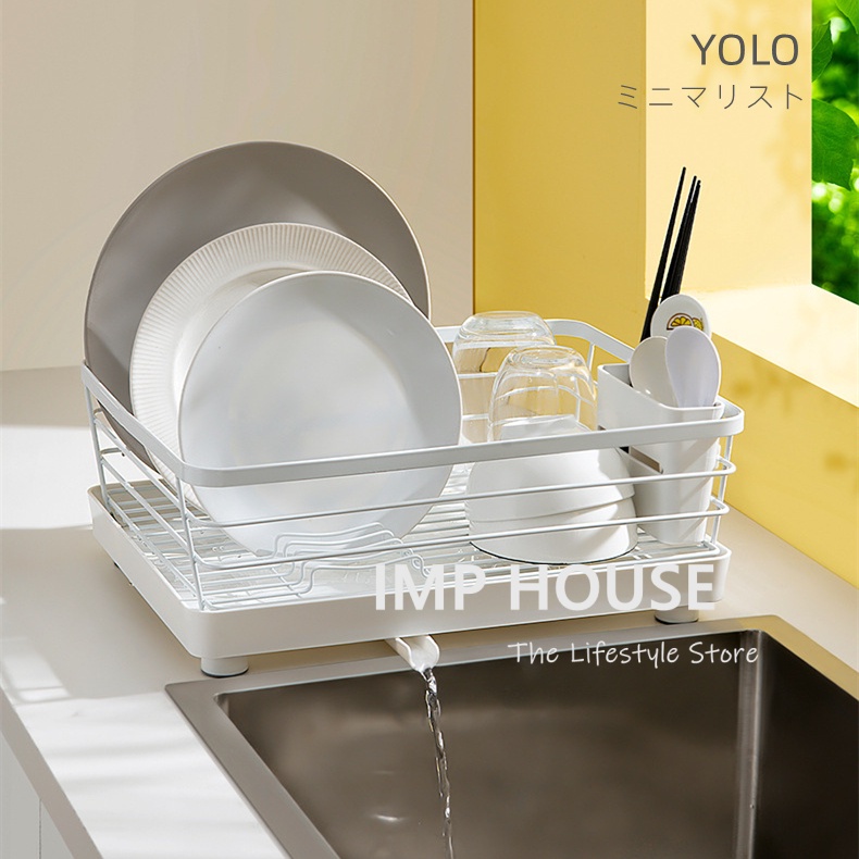 [SG] IMP HOUSE YOLO Minimalist Style Dish Draining Rack with Tray Dish Rack with cutlery holder