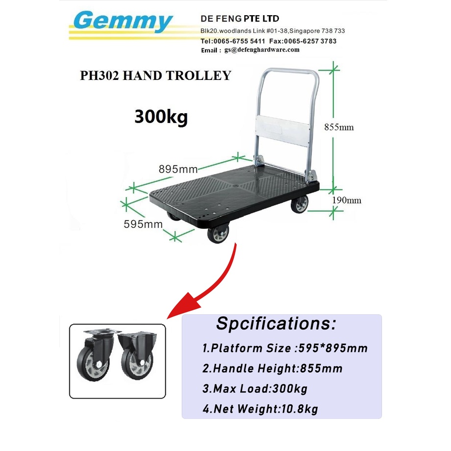 {SG In-Stock}Hand Trolley Loading Weight 300kg Foldable Trolley/Hand Truck {Black Colour ) Installed Trolley/Top Quality