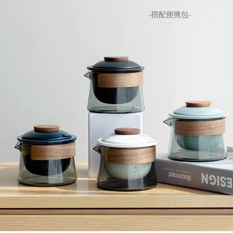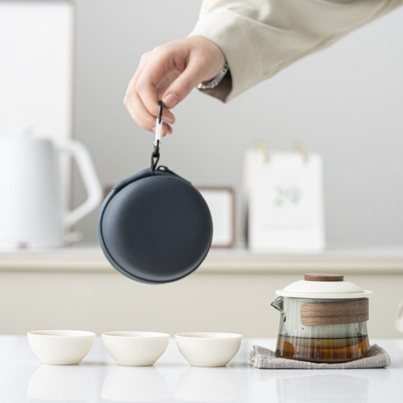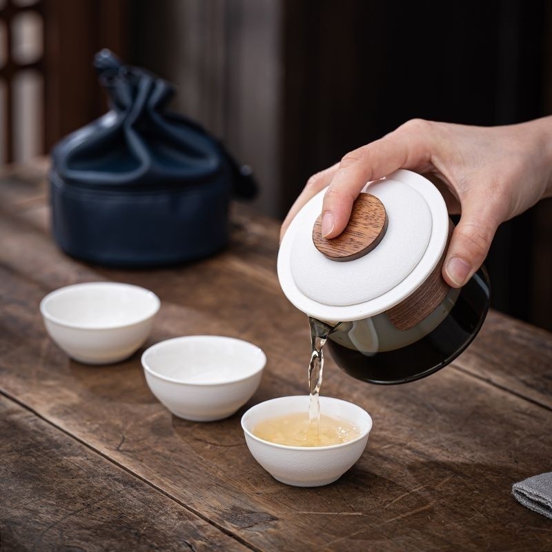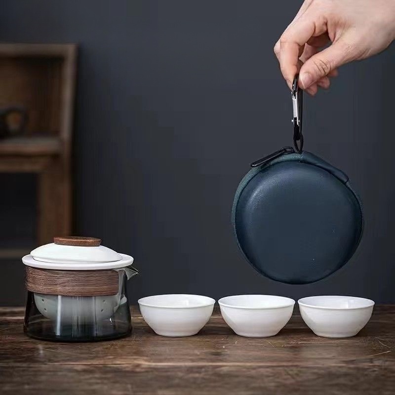 [SG In Stock]Portable Tea Set Travel Teapot Set Chinese Tea Set Teapot One Pot Three Cups Teapot Stackable Teapot Set