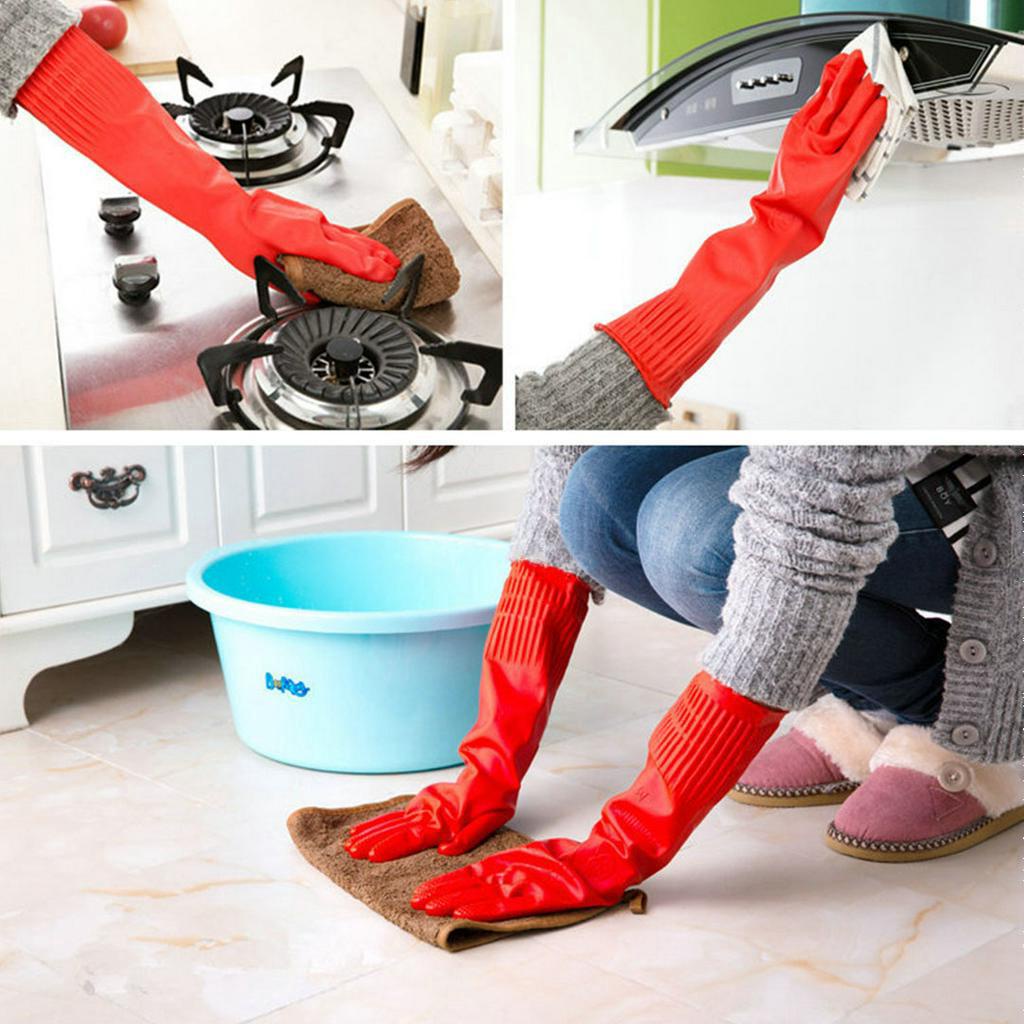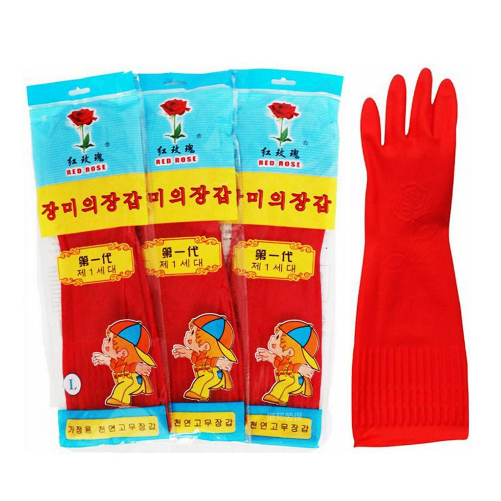{SG} Kitchen Gloves Red Rose Rubber Cleaning Gloves Home Dishwashing Waterproof Reuseable