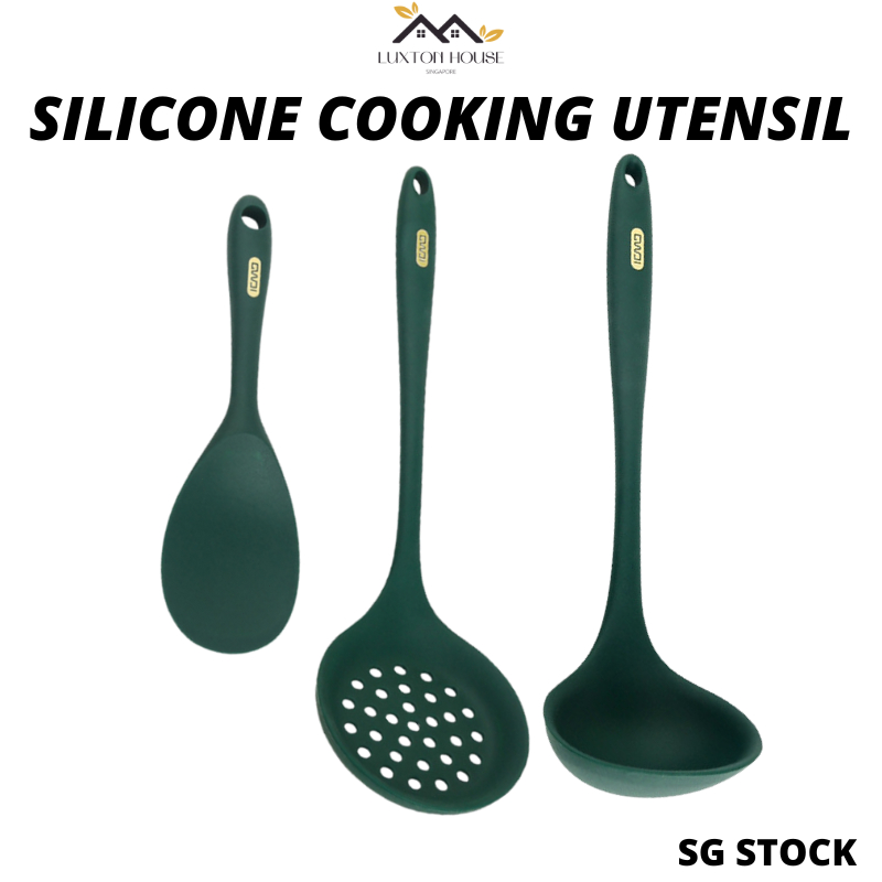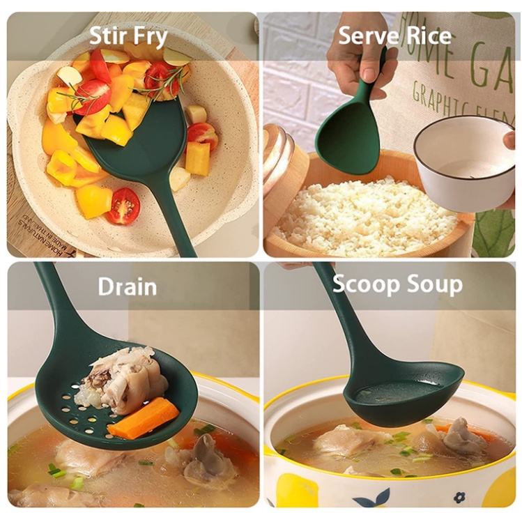 {SG} Kitchen Silicone Cooking Utensil for Nonstick Pan of Silicone Spatula Spoon Colander Salad Fork Utensils