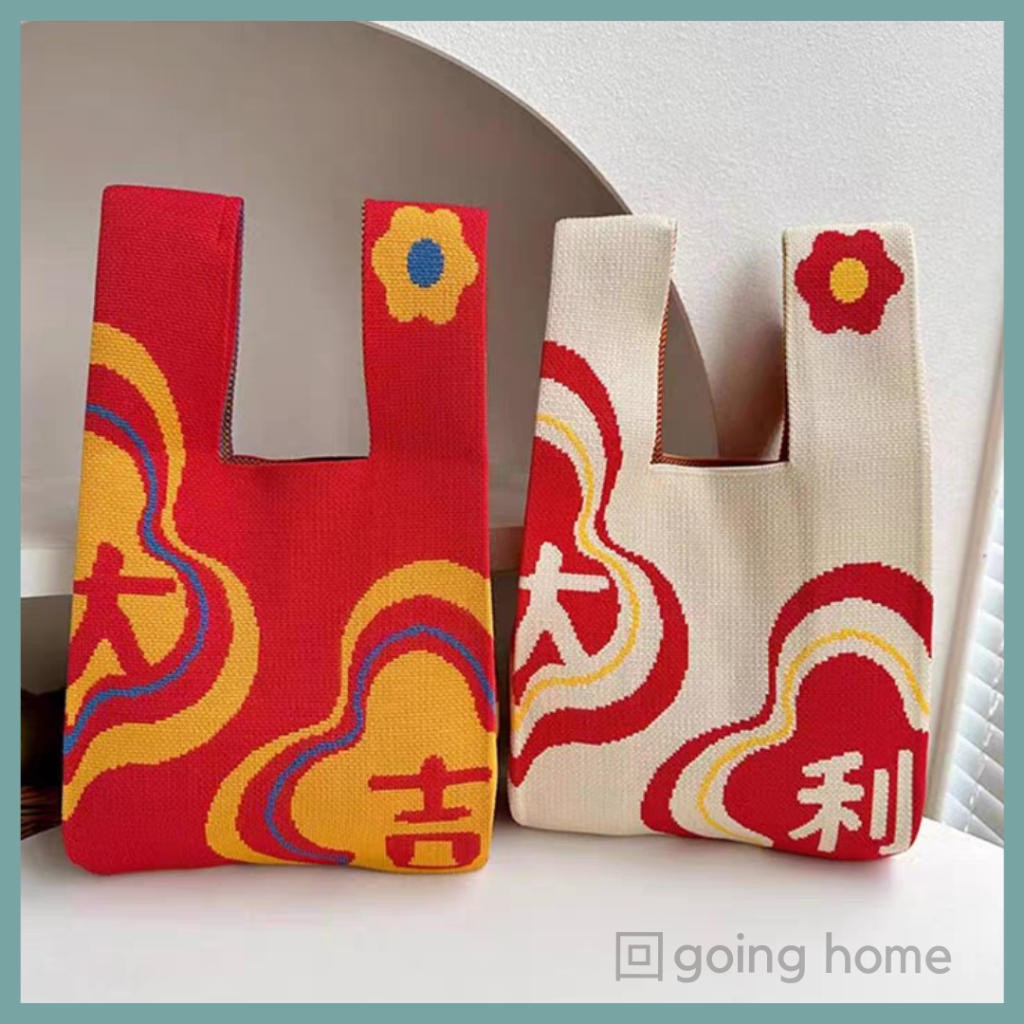 [SG] Knitted Oranges Reusable Bag CNY Chinese New Year Visiting Bainian FuDai Chic Soft Quality