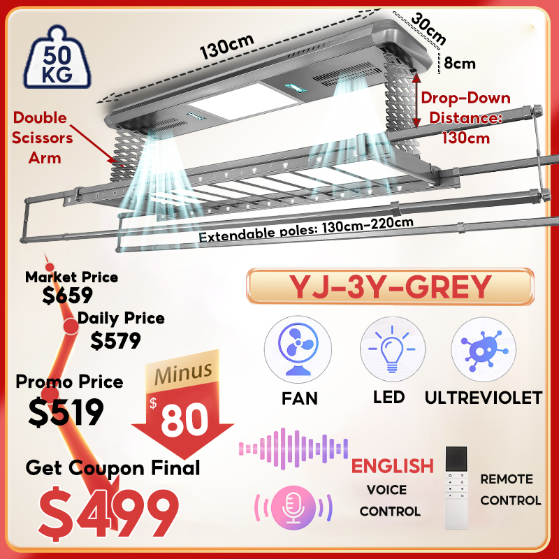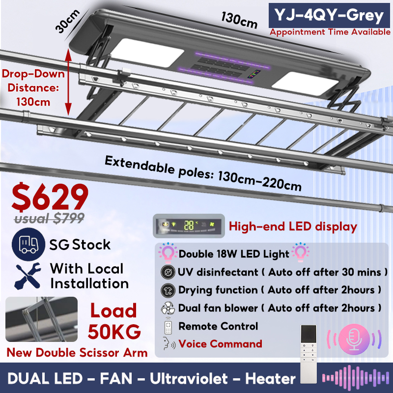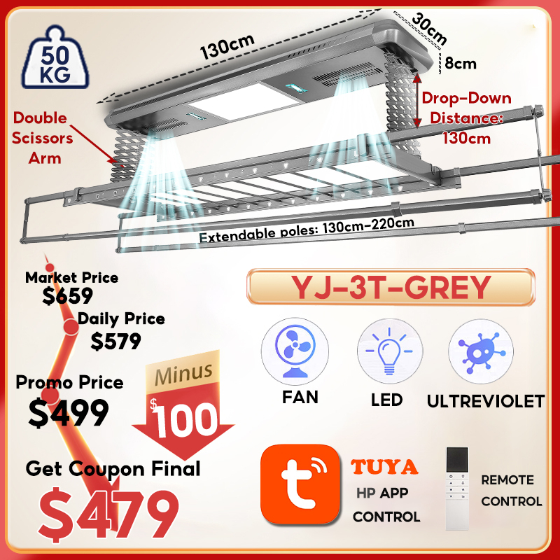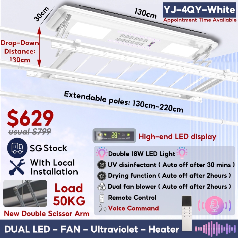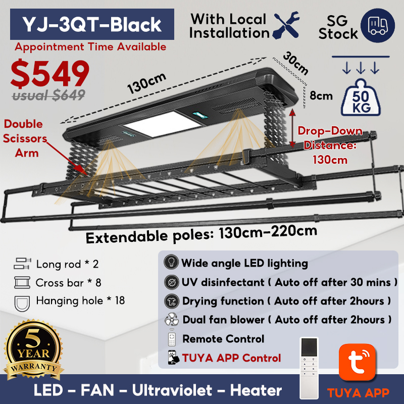 [SG LOCAL] Automated Laundry Rack Tuya-app Control Ceiling Clothes Drying Rack 5 Years Warranty Smart Laundry System With Standard Installation
