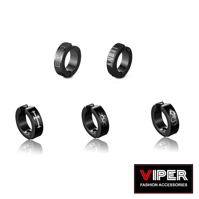 [SG LOCAL READY STOCK] - Print Designs - No Piercing Ear Cuffs Clip On Earrings for Men - (Stainless Steel Hoop Male)