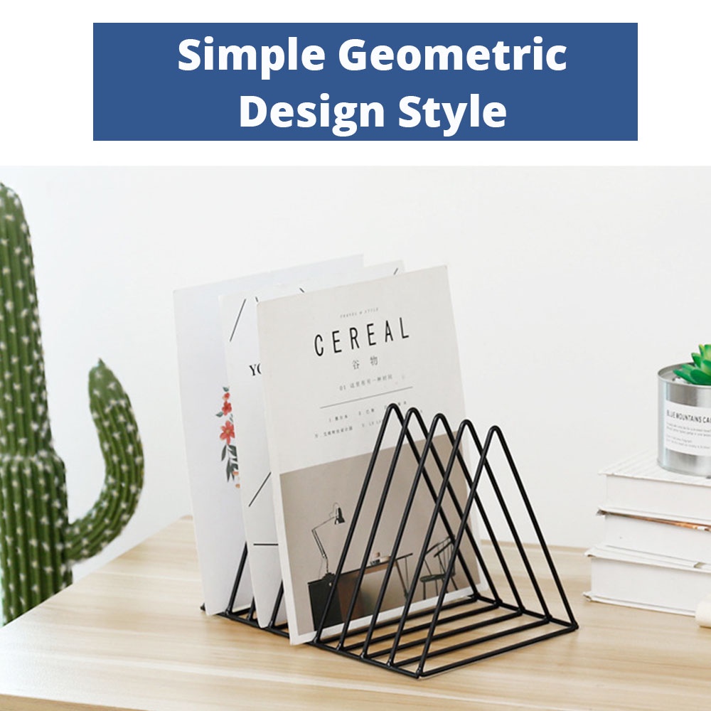 {SG} Desktop Book Storage Magazine Rack Desk Organizer Shelf Iron Rack Triangle Book Stand Metal Bookshelf