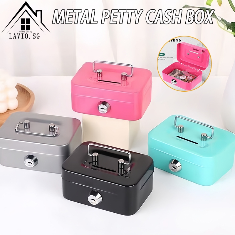 [SG] Metal Petty Cash Box Handle Tray Safe Money Coins Bill Key Security Kotak Wang Safety Box Box with Lock Lockable