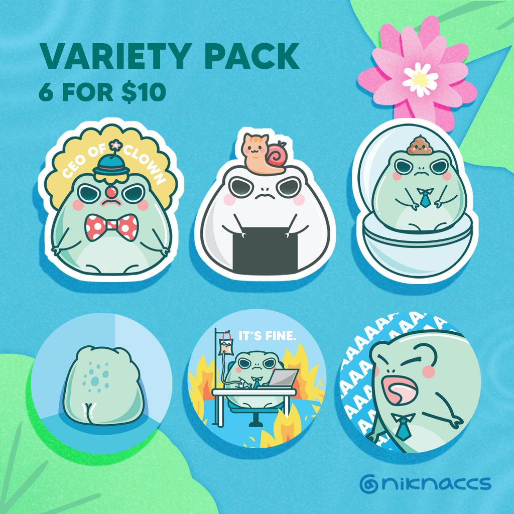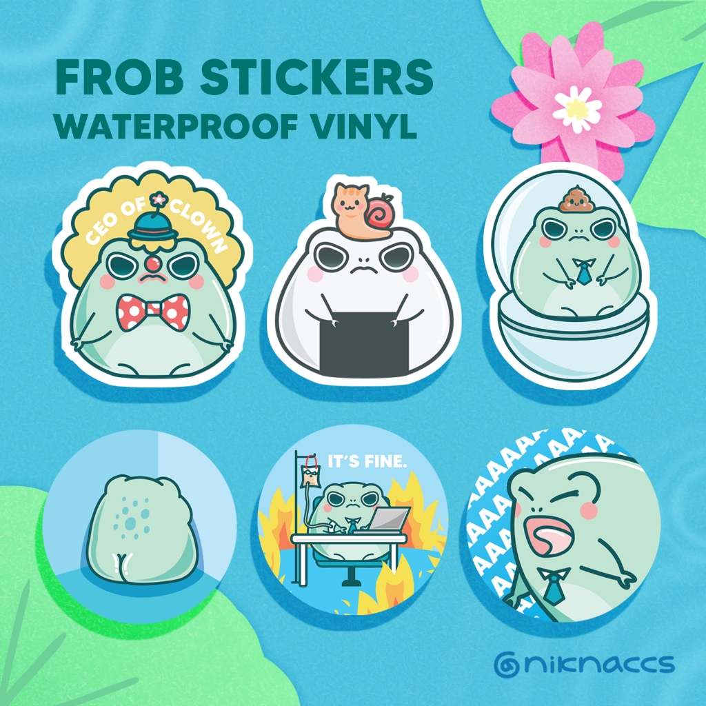 [SG Niknaccs] Instocks Frob Vinyl Stickers Frog Cute Corporate Funny Clown Poop Laptop Luggage Waterproof Gloss Diecut