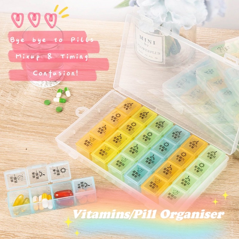 [SG] Portable Medicine Case Box Pill Case Medicine Organiser Travel Pill Box 28PC