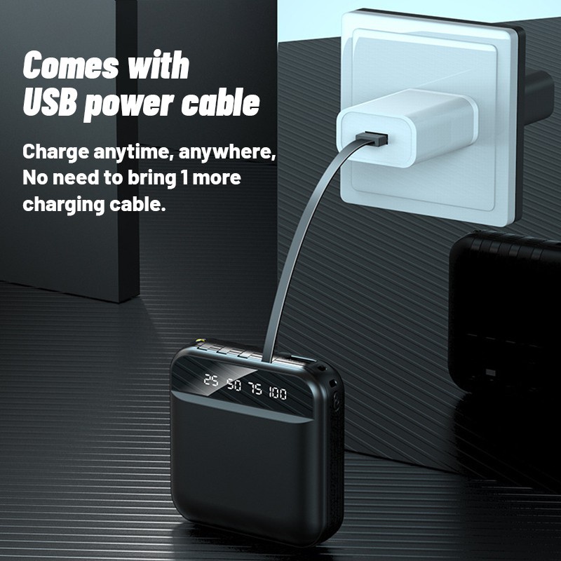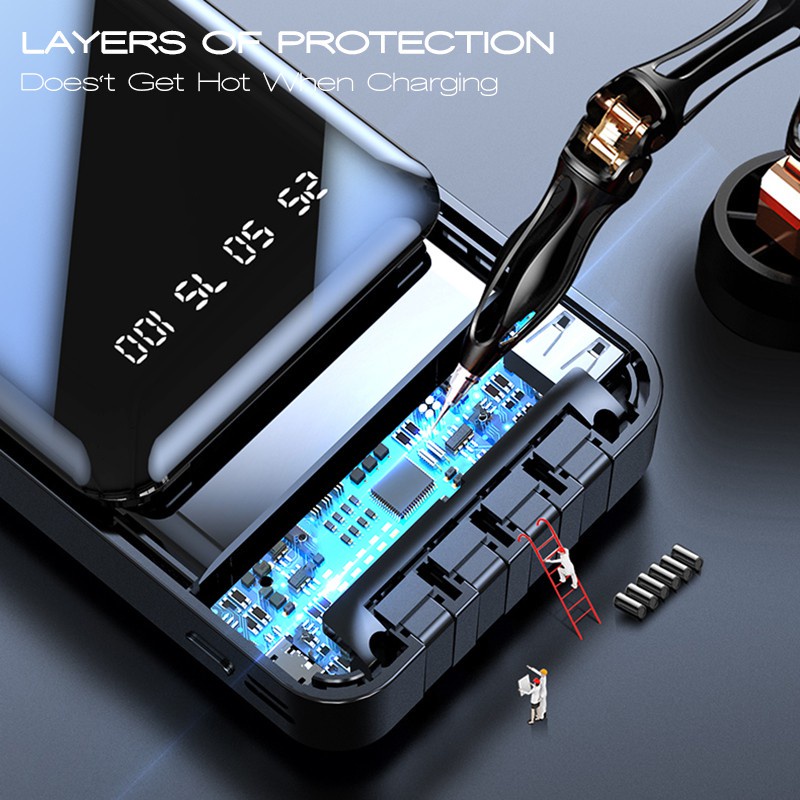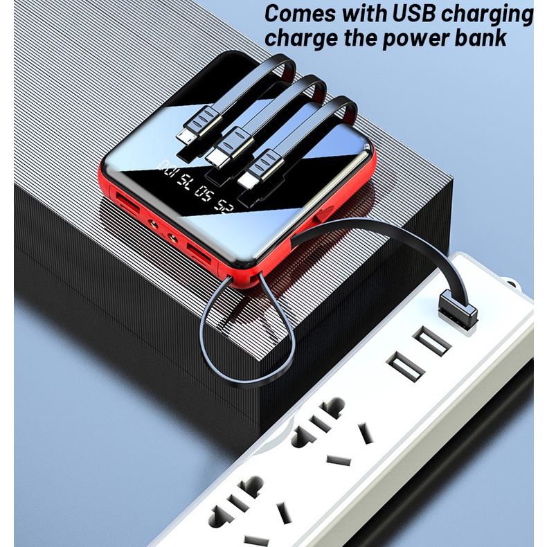 [SG READY STCOK]4 Cables Full Capacity Mini Powerbank Dual USB Portable Fast Charging 20000mah Power Bank Fast Charging