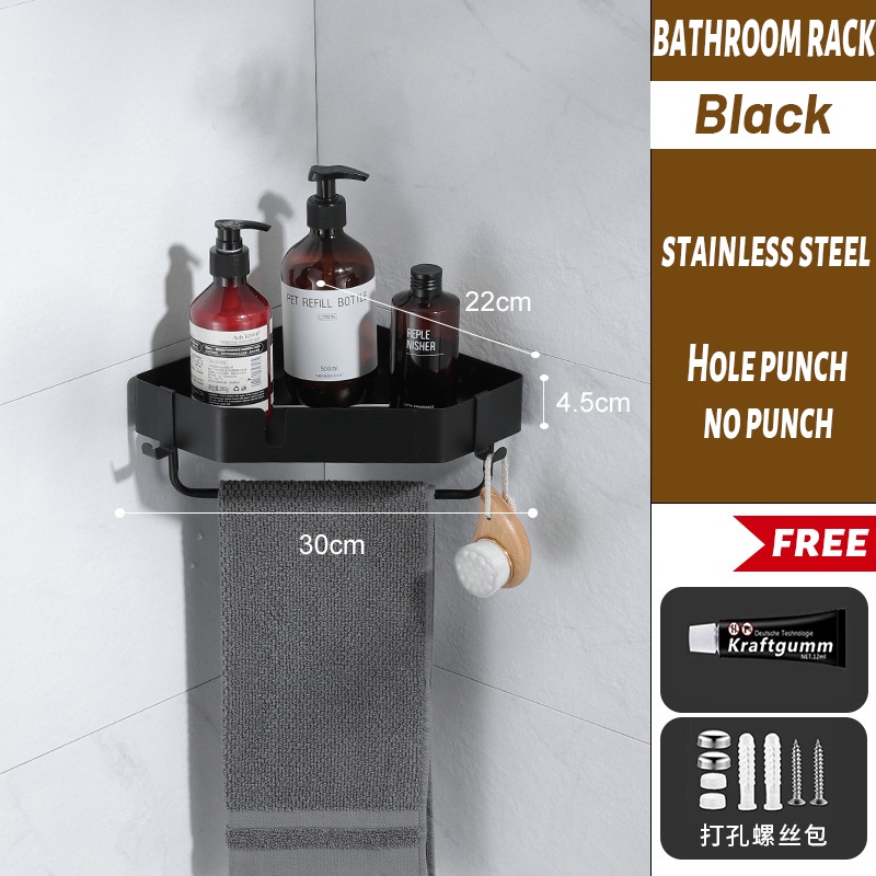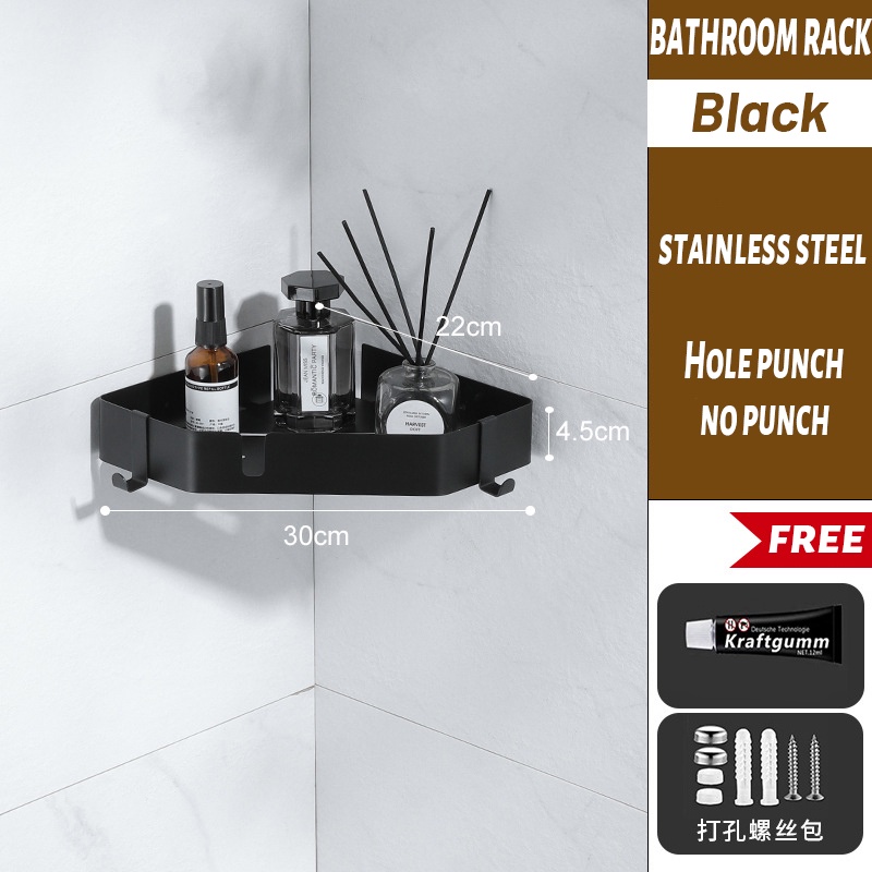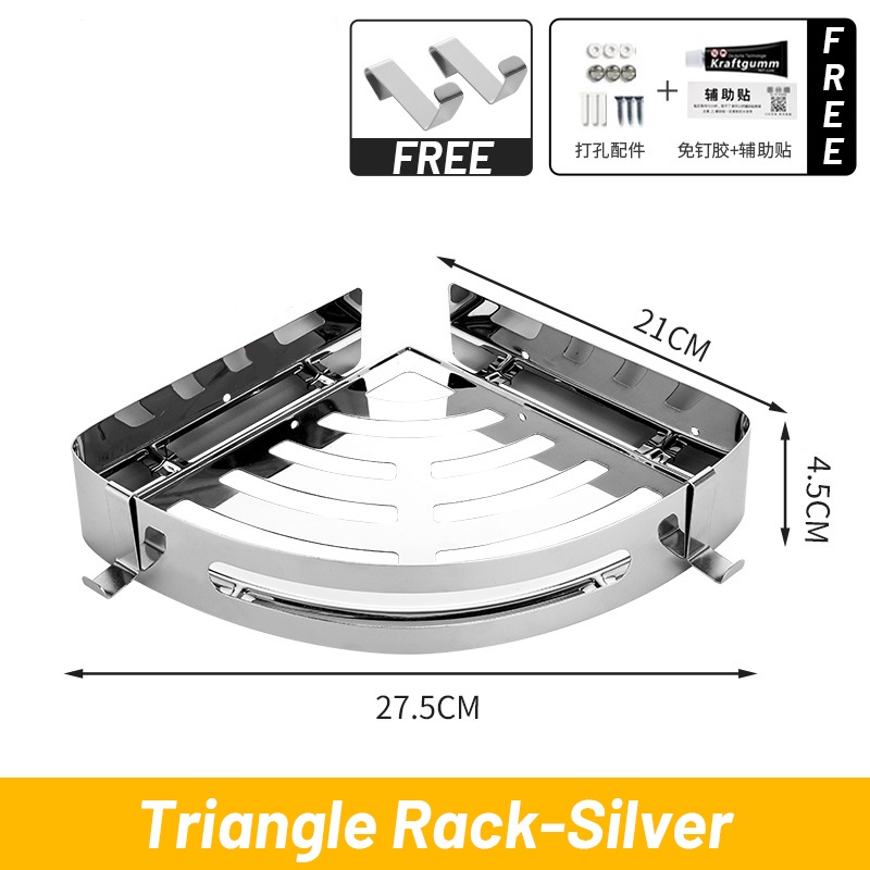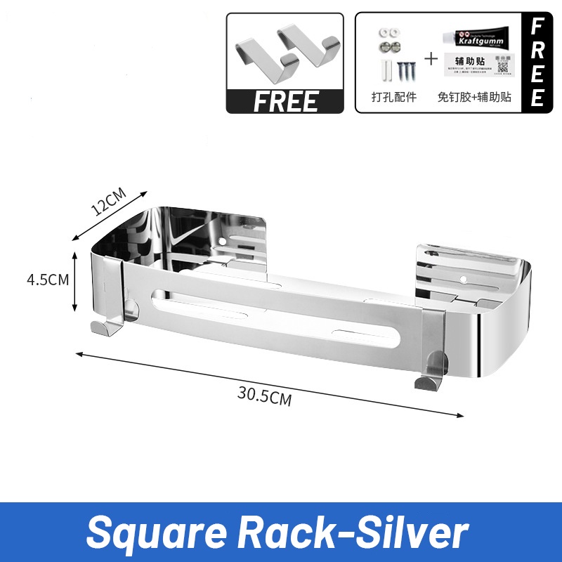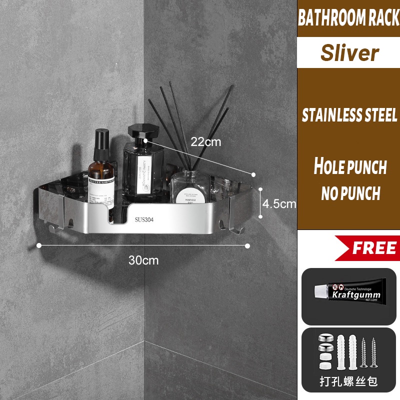 [SG READY STCOK] Bathroom rack 304 stainless steel toilet rack free punching triangle storage rack square storage rack