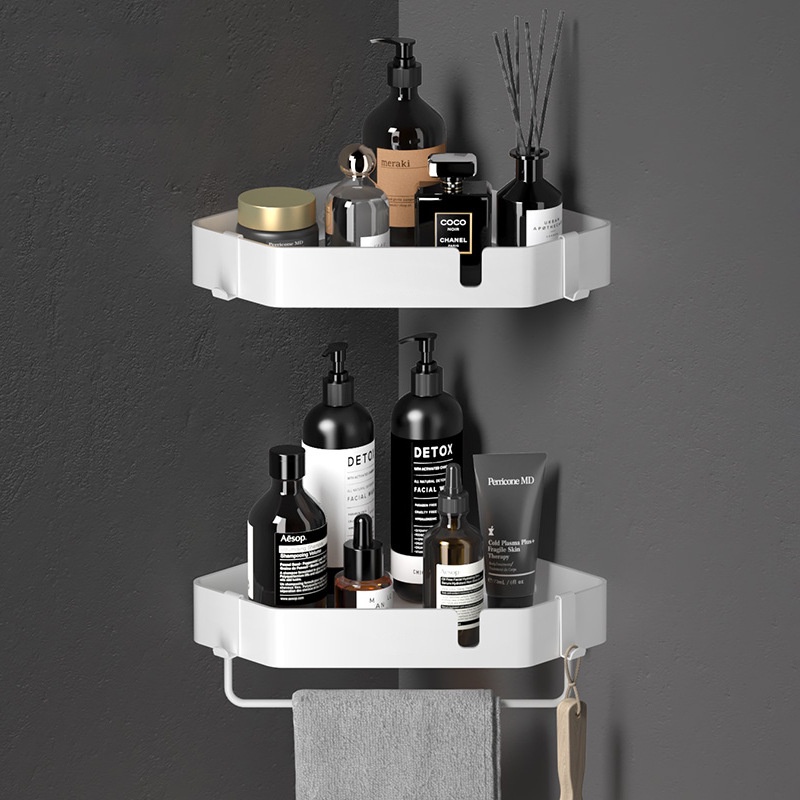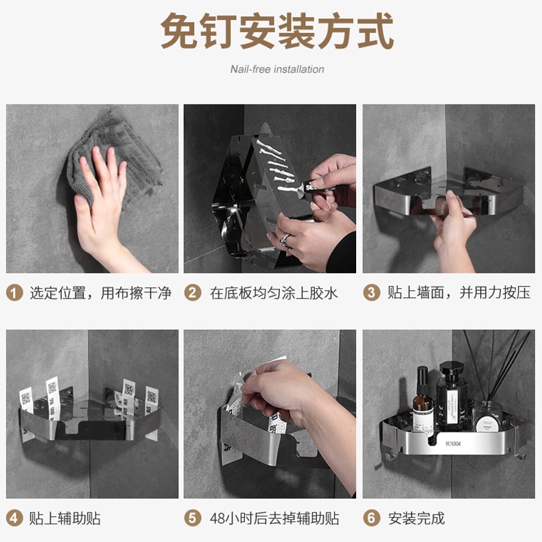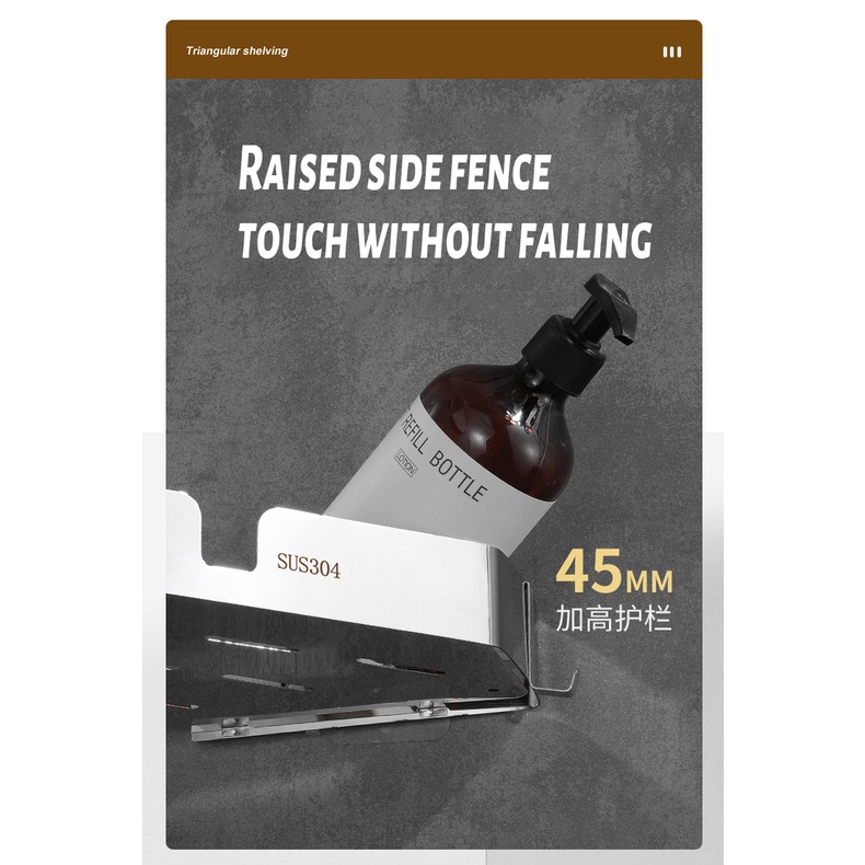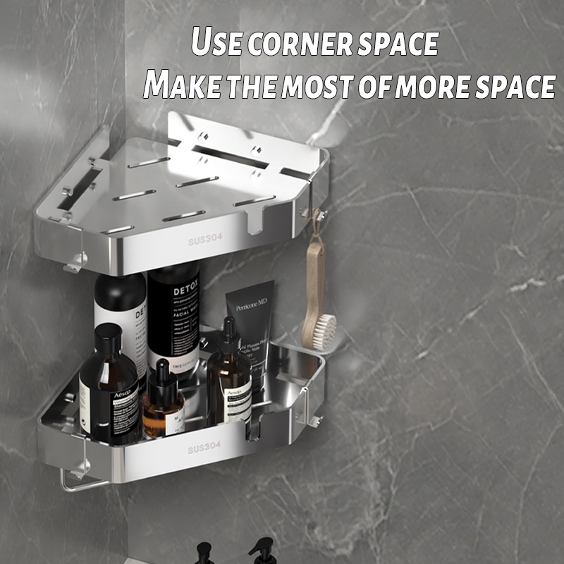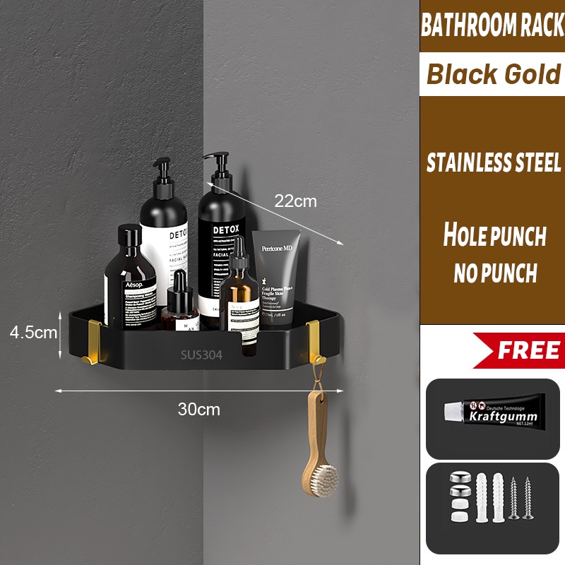 [SG READY STCOK] Bathroom rack 304 stainless steel toilet rack free punching triangle storage rack square storage rack