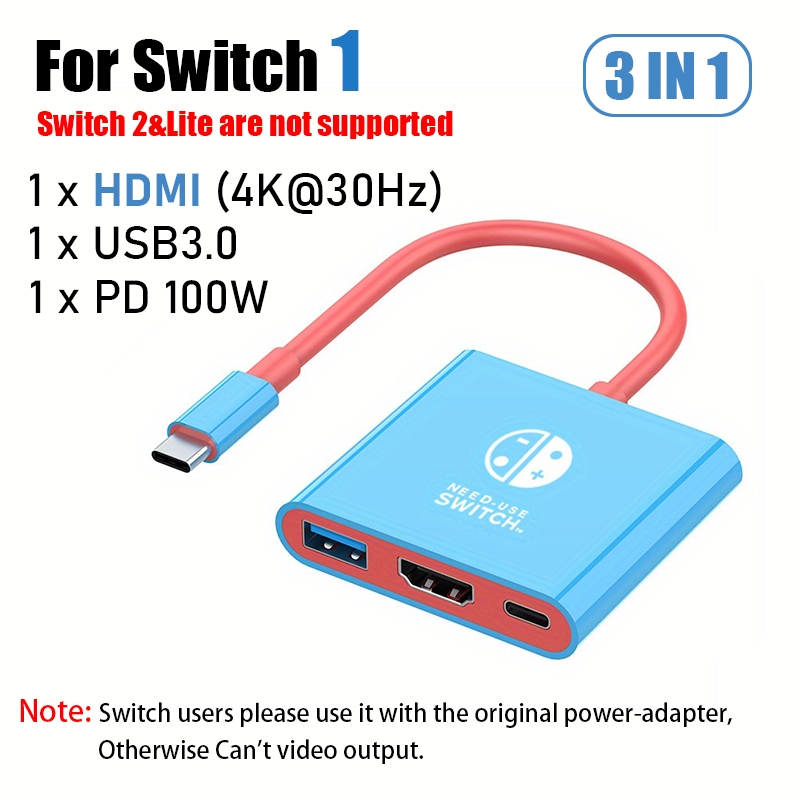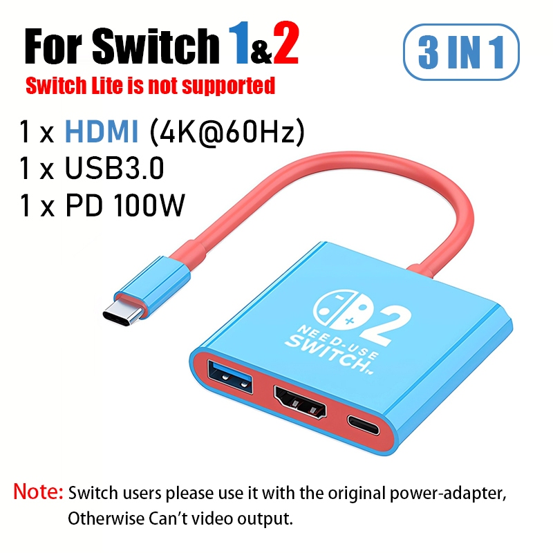 [SG STOCK] 3-IN-1 Portable USB C Hub for Nintendo Switch 2 Oled/NS TV Dock HDMI Adapter Laptop Docking Station