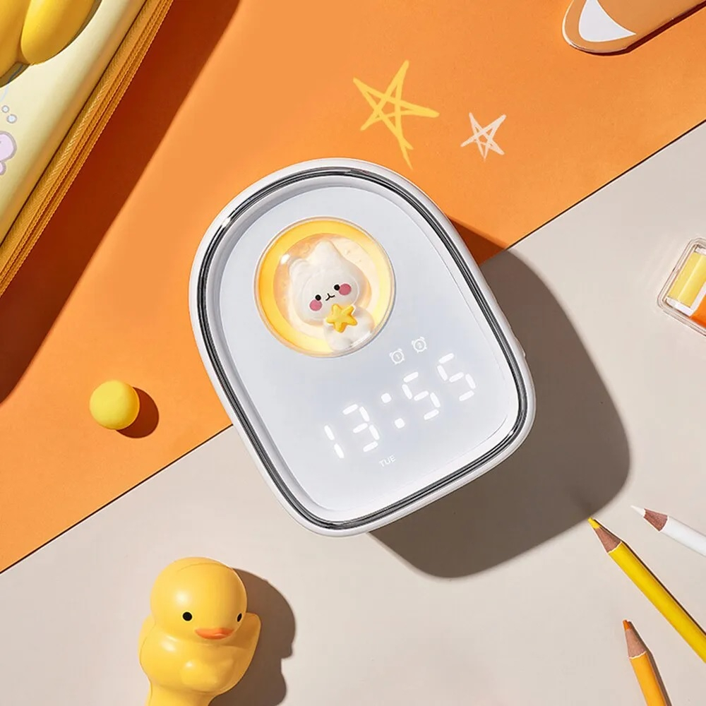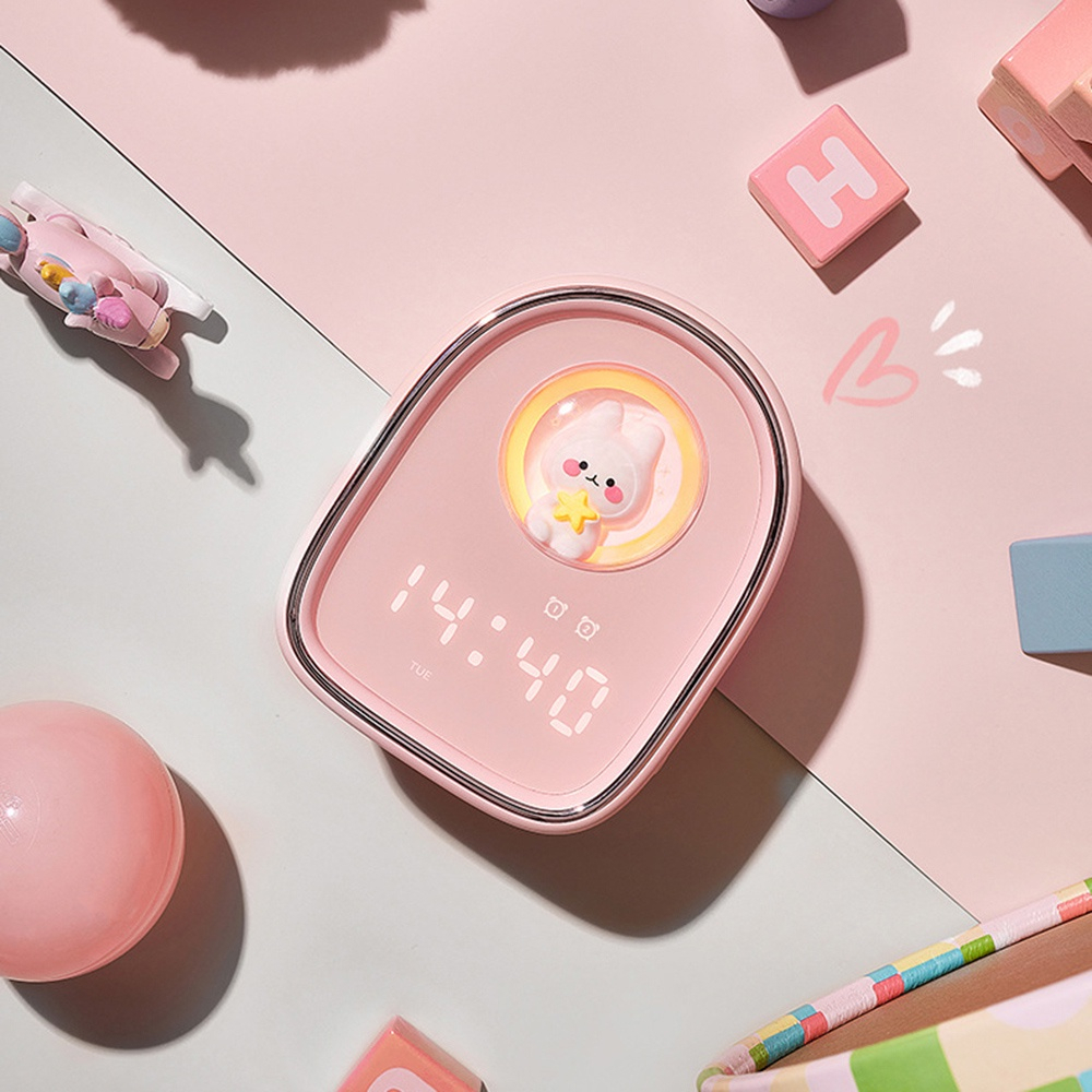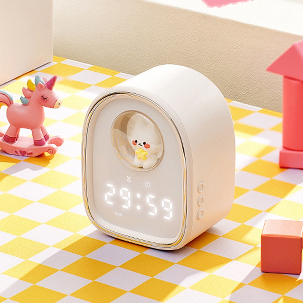 [SG READY STOCK] New Space Capsule Cute Rabbit Alarm Clock Children's Cartoon Cute Bedside Soft Night Light