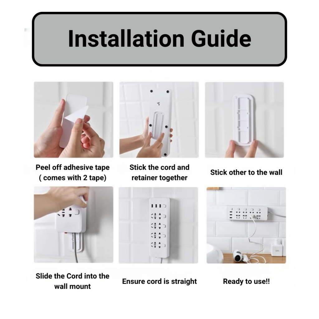 [SG READY] Wall Adhesive Mount Power Extension Cord/Cable Clip/Cable Organsier (No drilling needed)