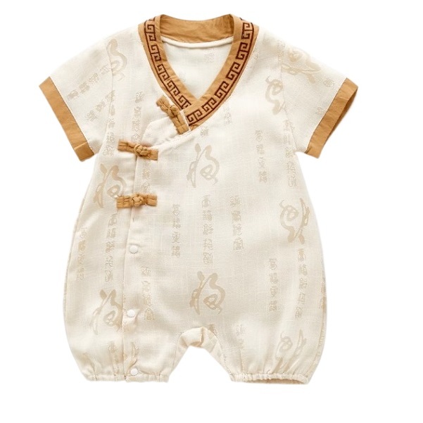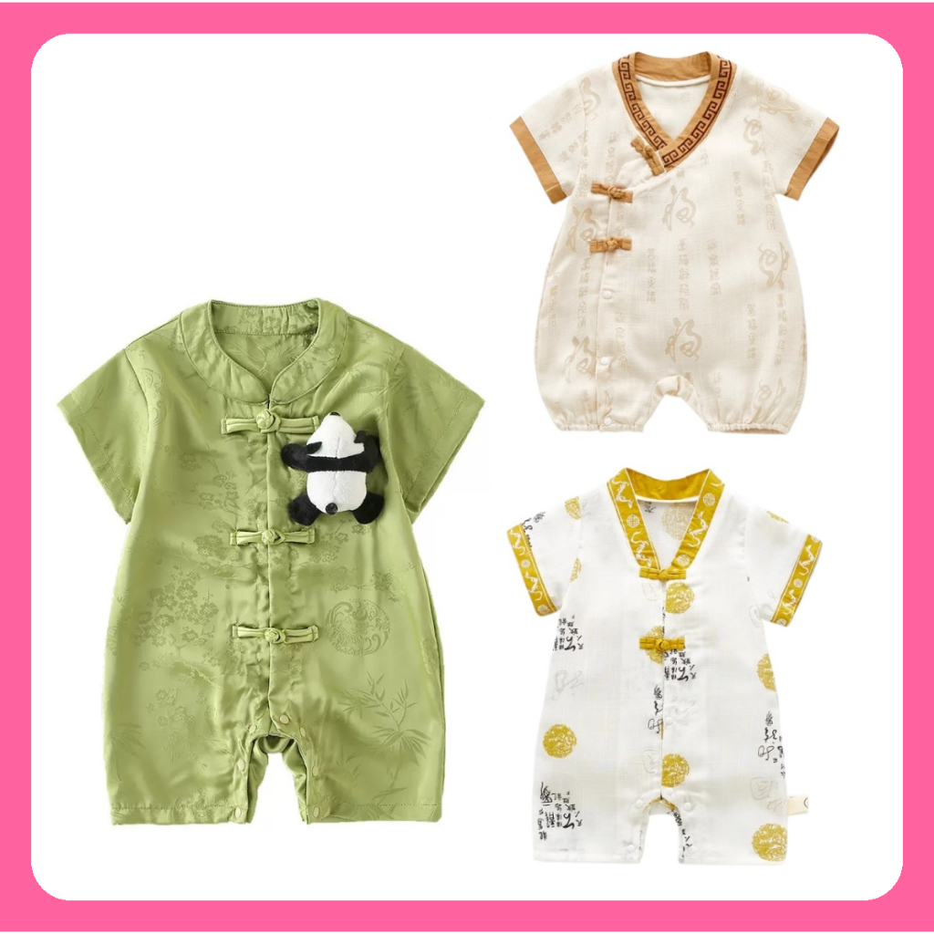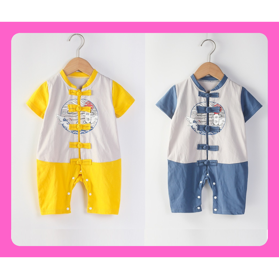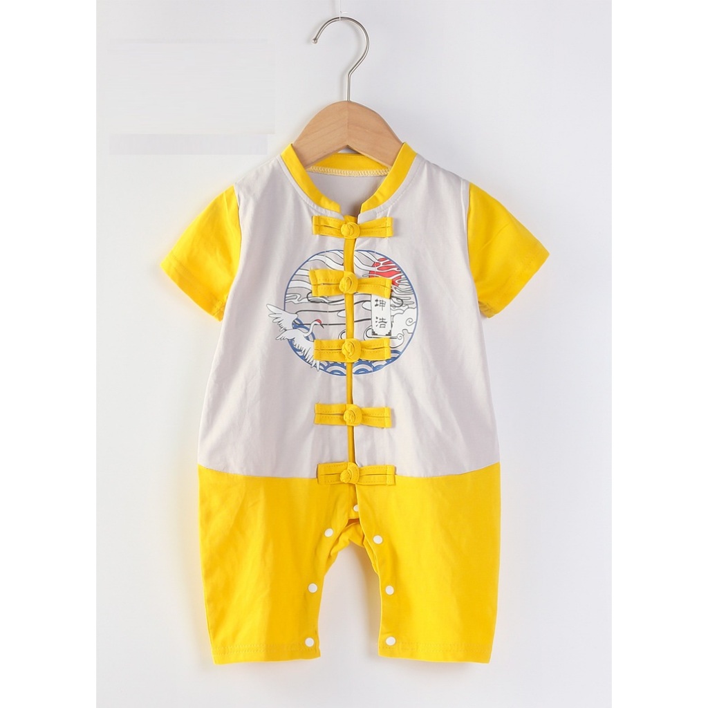 [SG Ready Stock] CSRB053 Baby Toddler Boy Chinese CNY Traditional Romper Jumpsuit Onesie Dragon ball Panda Gold [Little