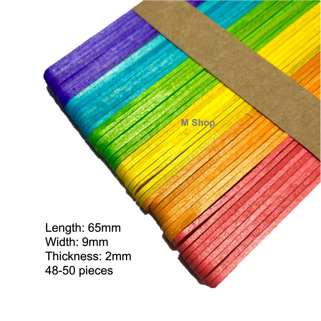 [SG Ready Stock] Ice Cream Craft Sticks Thick Thin Colourful Rainbow Wooden Stick Match Stick Flat Rope Stick Long Short