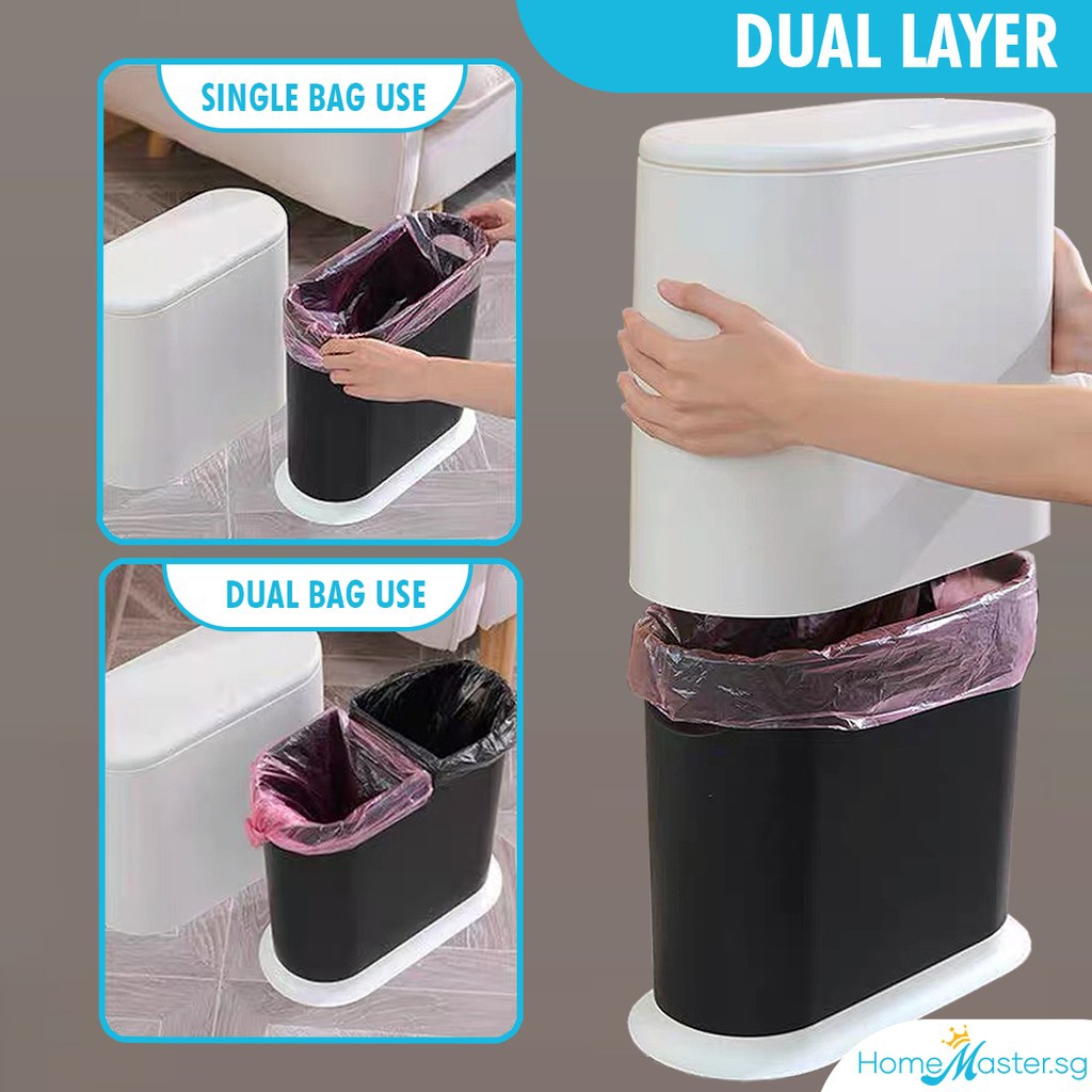 [SG Ready Stock] Japan Style Dustbin Simple Bathroom Kitchen Hand Press Trash Bin