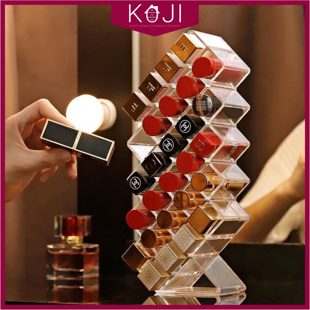 KOJI Standing Acrylic Lipstick Storage 16 or 28 Compartment Stylish Cosmetic Storage