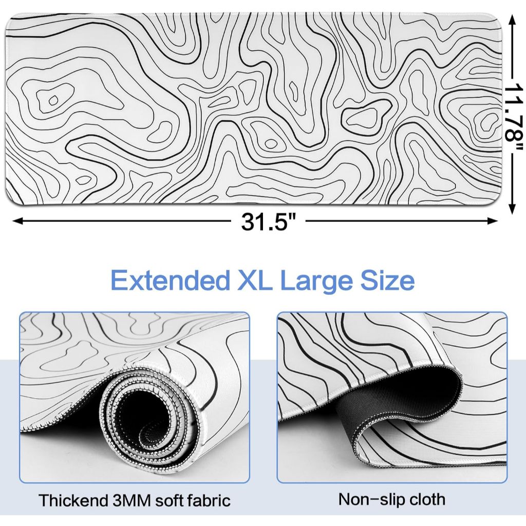 [SG] Ready Stock White Terrain Graphics Line Mouse Mat Anti-Slip Mouse Pad Mousepad Extended Gaming Mousepad
