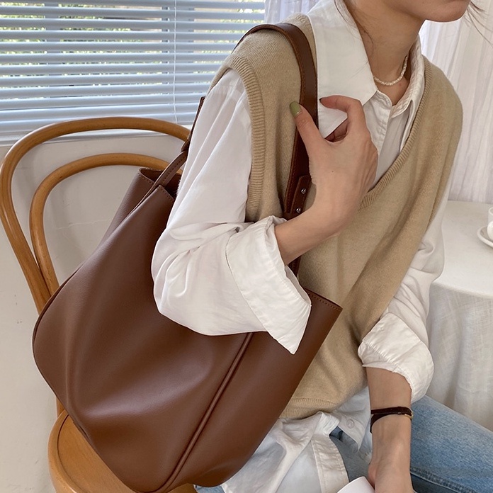[SG SELLER] 3 Colors - Minimalist Korea Women Work Simple PU Leather Shoulder Bag