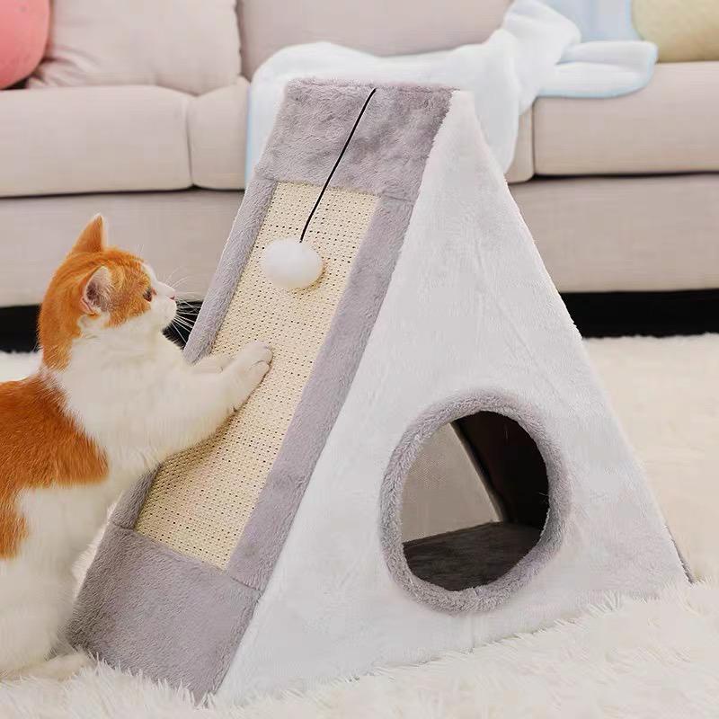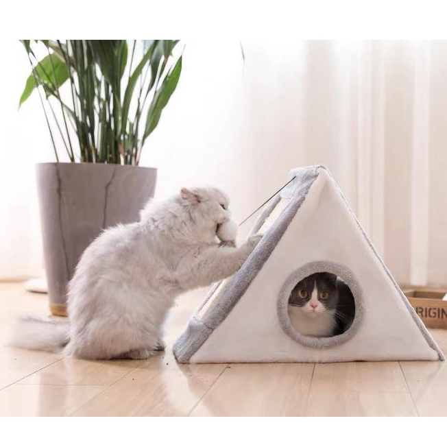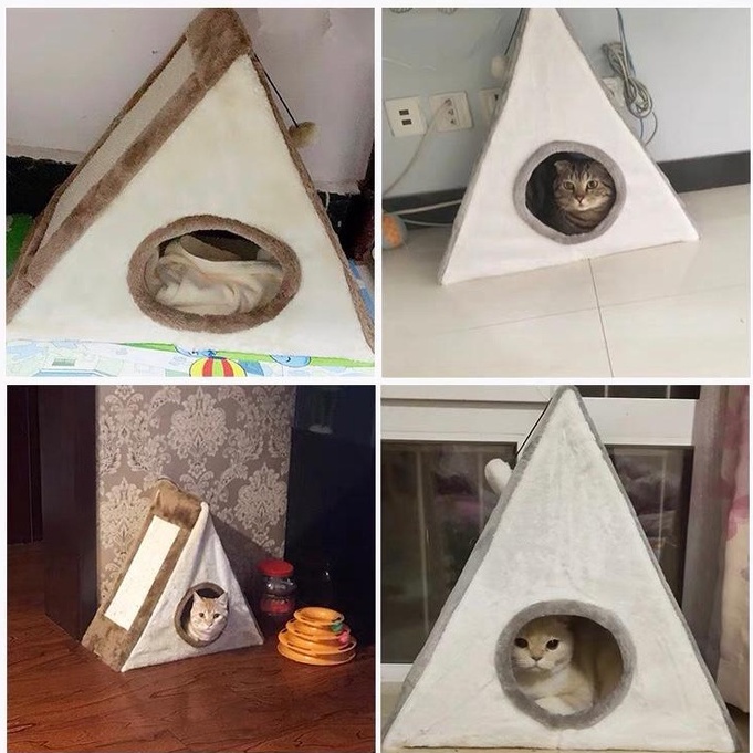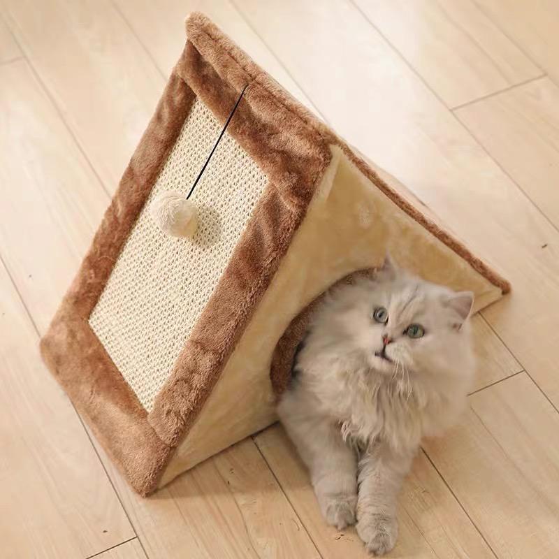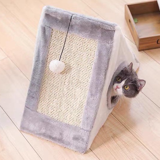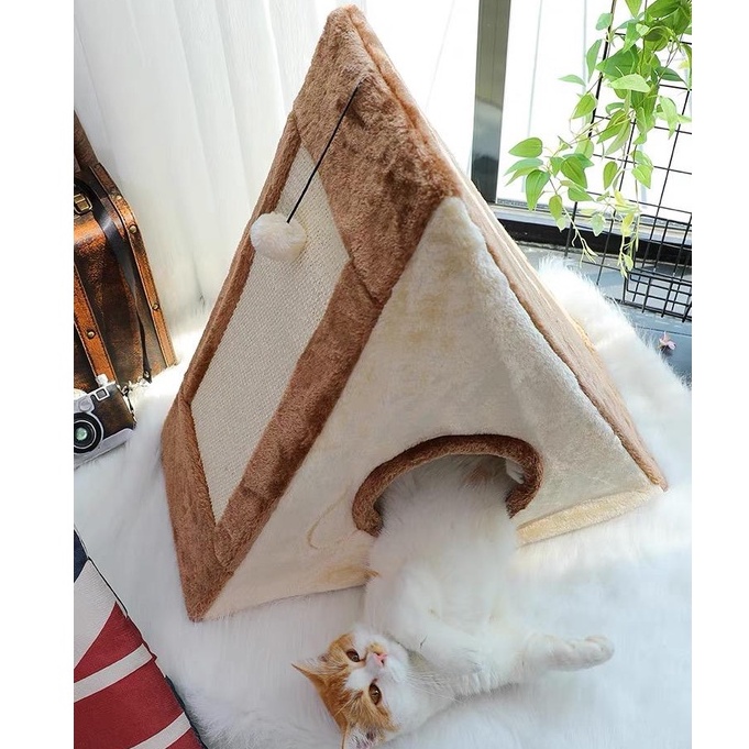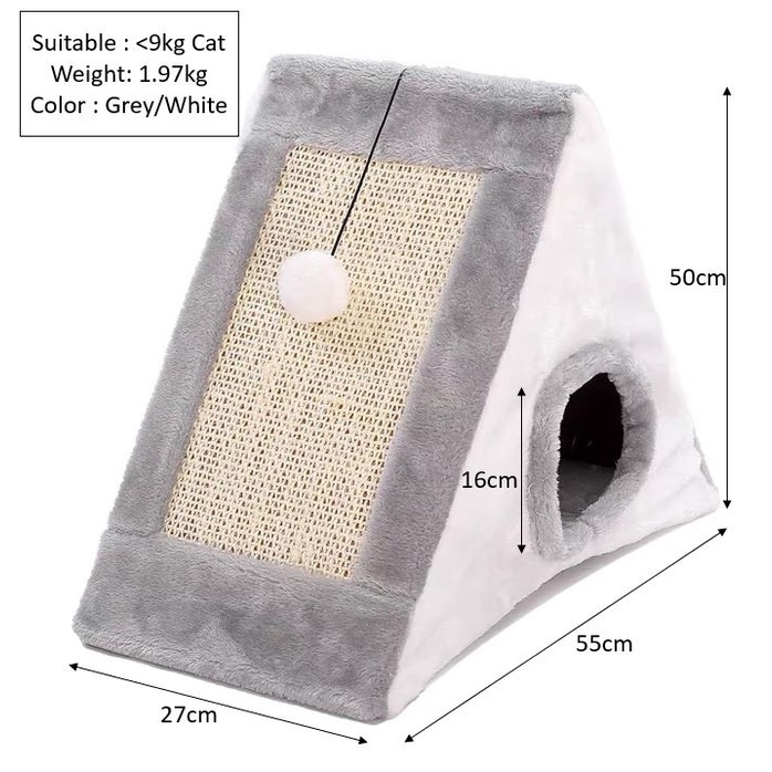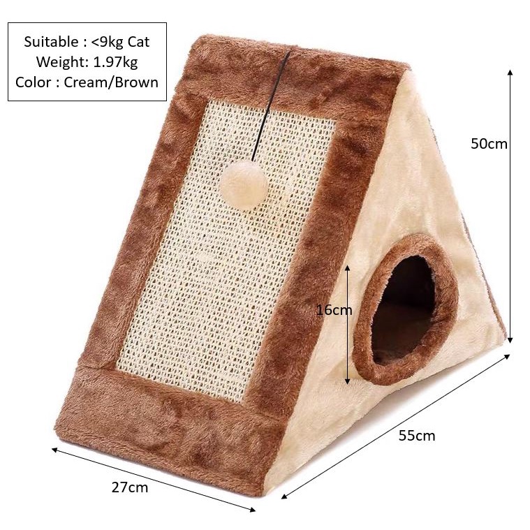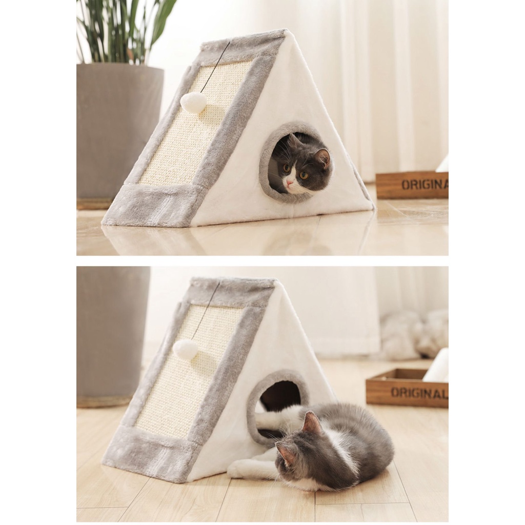 [SG SELLER] Cat Playhouse with Scratcher Pad Scratching Board Scratcher Cardboard House Cat Rest Play Triangle House