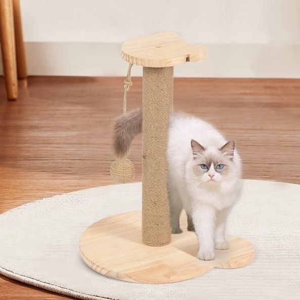 [SG SELLER] Cat Scratching Post / Solid Wood Cats Scratcher Post / Cat Kitten Scratch Toy / Wooden Scratching Sisal Post