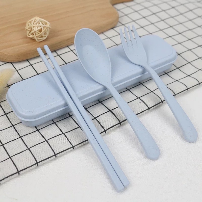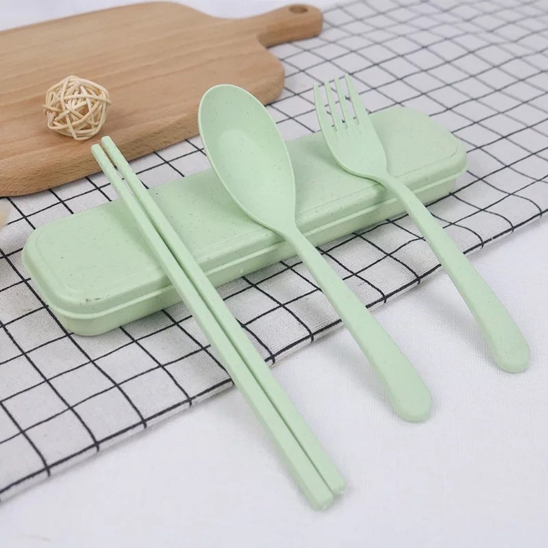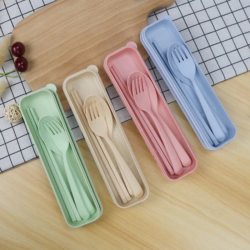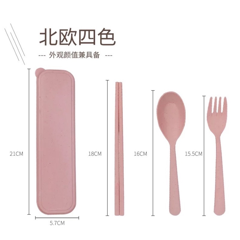 [SG SELLER] Eco-friendly plastic set wheat straw with case picnic and reusable bamboo biodegradable cutlery