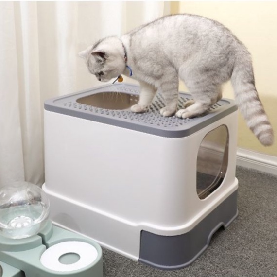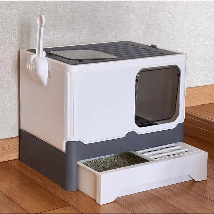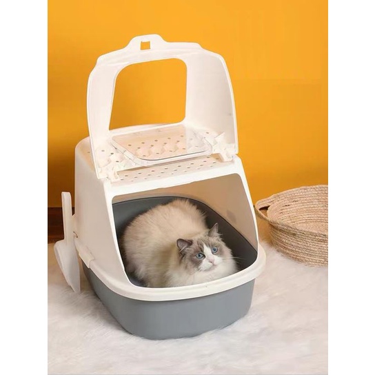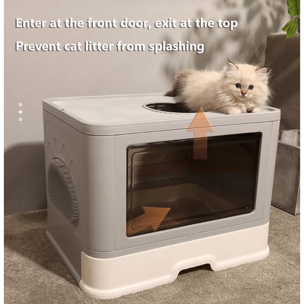 [SG SELLER]Enclosed Cat Litter Box Large Litter Box With Odor Removal Foldable Litter Box Semi Enclosed Litter Tray