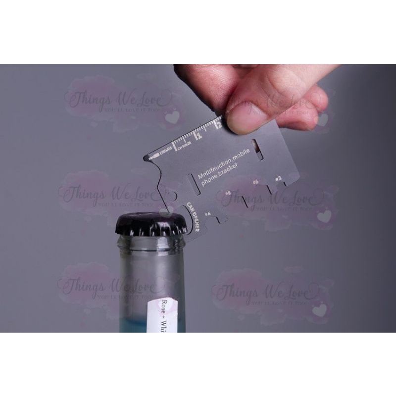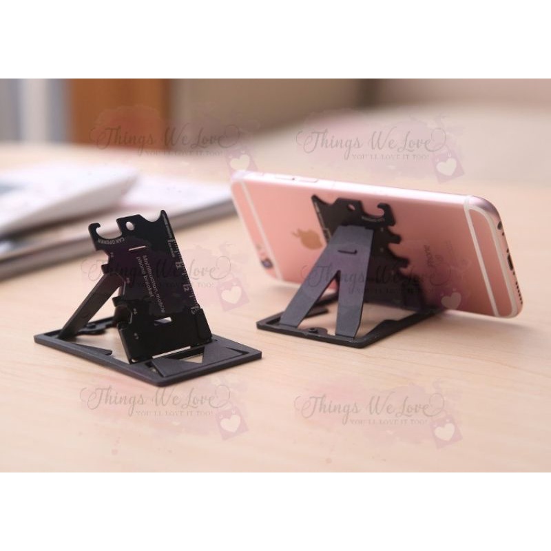 [SG] [FREE SHIP] Multi Purpose Phone Stand Metal Card Size Tool Kit Mobile Device Holder HP Smartphone Camping