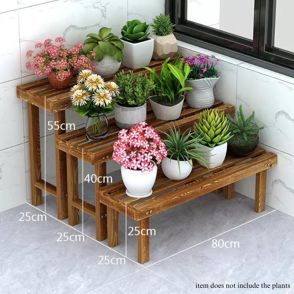 [SG SELLER] Plant Rack Plant Stand Wooden Stainless Steel Flower Plant Rack Multi Layer Indoor Outdoor Plant Shelf Rack