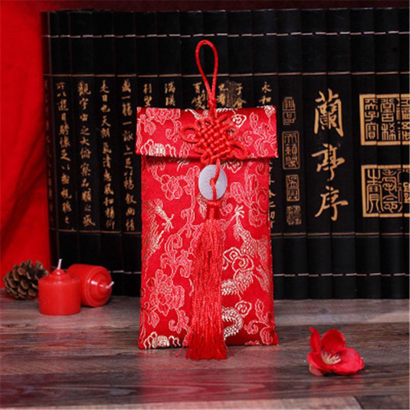[SG SELLER] Silk Embroidery Design Red Packet/ Silk Red Poach/ CNY Cloth Material Ang Bao