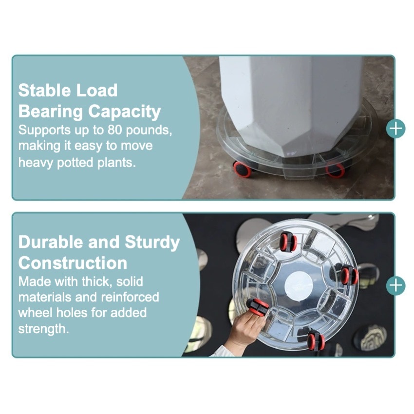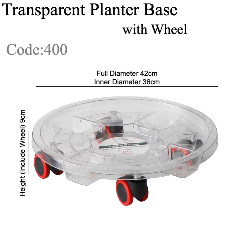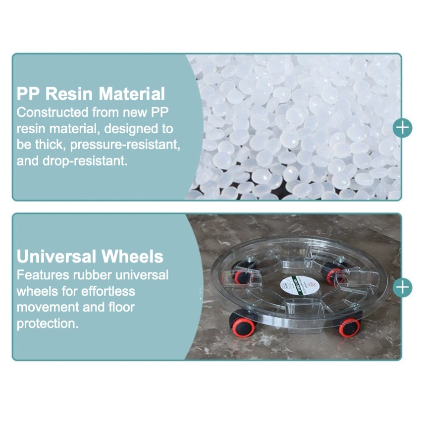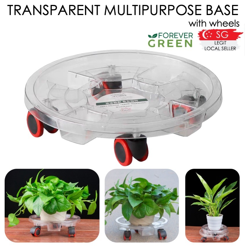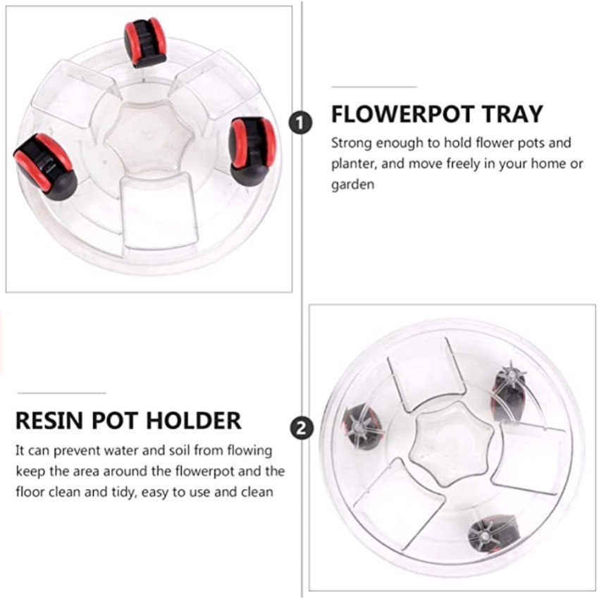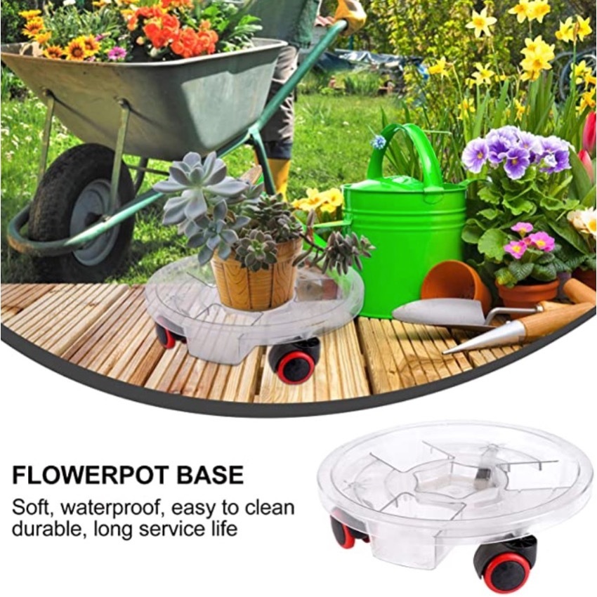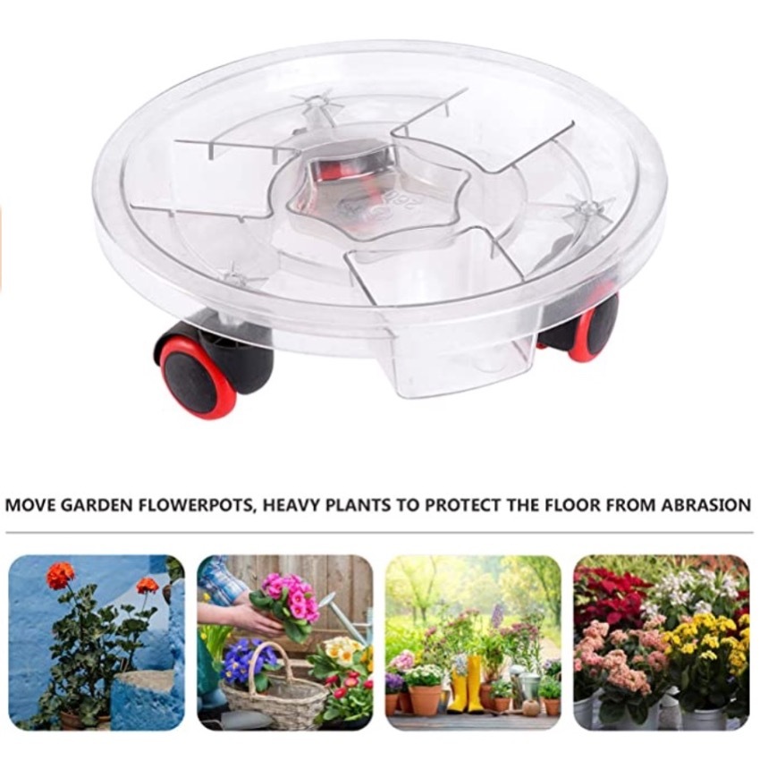 [SG SELLER] Transparent Plant Pot Base with Wheels Movable Plant Planter Tray Cement Pot Plastic Saucer Pan with Wheels
