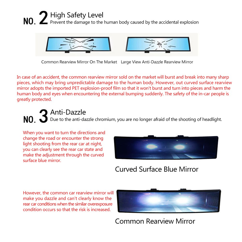 [SG SHIP IN 24 HOURS] Car Blue Rear View Mirror with Anti-glare and Wide Angle feature