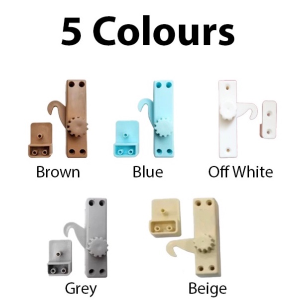 [SG SHOP SELLER] HDB PVC Sliding Toilet Door Lock / Hook Brown / Blue / Off White / Grey / Beige