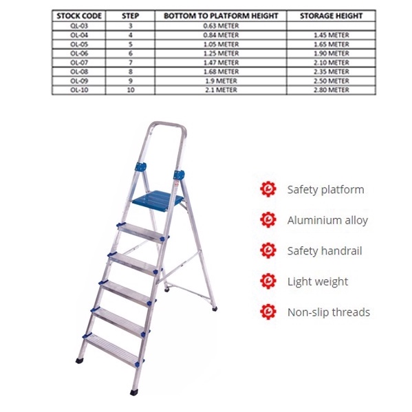 [SG SHOP SELLER] LADDERMENN "Queen" Family Domestic Heavy Duty Aluminium Step Ladder Available (4 to 10 Steps Ladder)